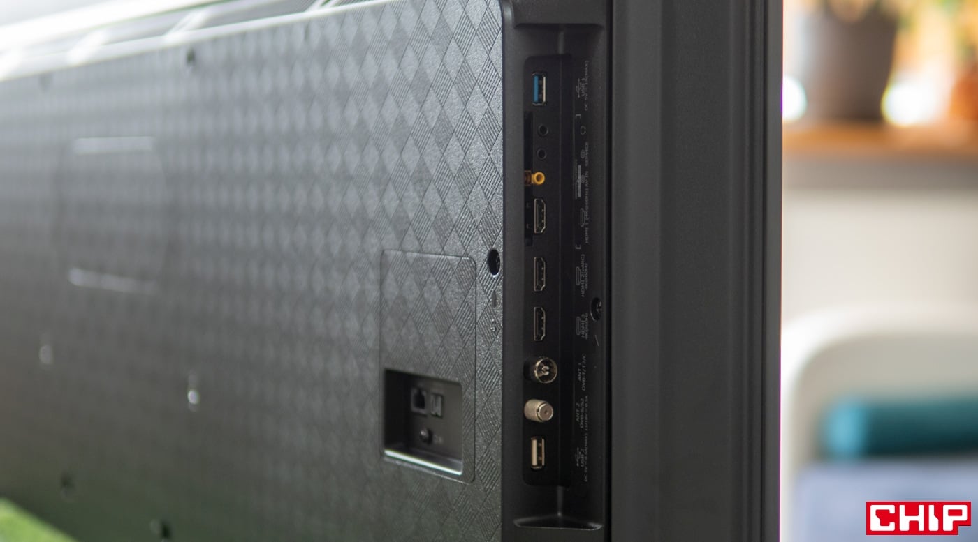 Świetne jest to, że tylne złącza są bardzo kompletnie opisane i bez trudu podepniemy HDMI, czy antenę do telewizji satelitarnej lub kablowej czy naziemnej. Nie brakuje portu Ethernet czy wyjścia optycznego audio. A zarazem są przewody też dla starego poczciwego kompozytu. Więc jeśli się uprzemy to i stary odtwarzacz VHS podepniemy bez większych problemów.