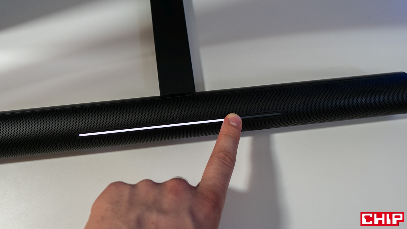 - wbudowany mikrofon, soundbar w podstawie 2x 5W, podświetlany, dotykowy pasek sterowania,
