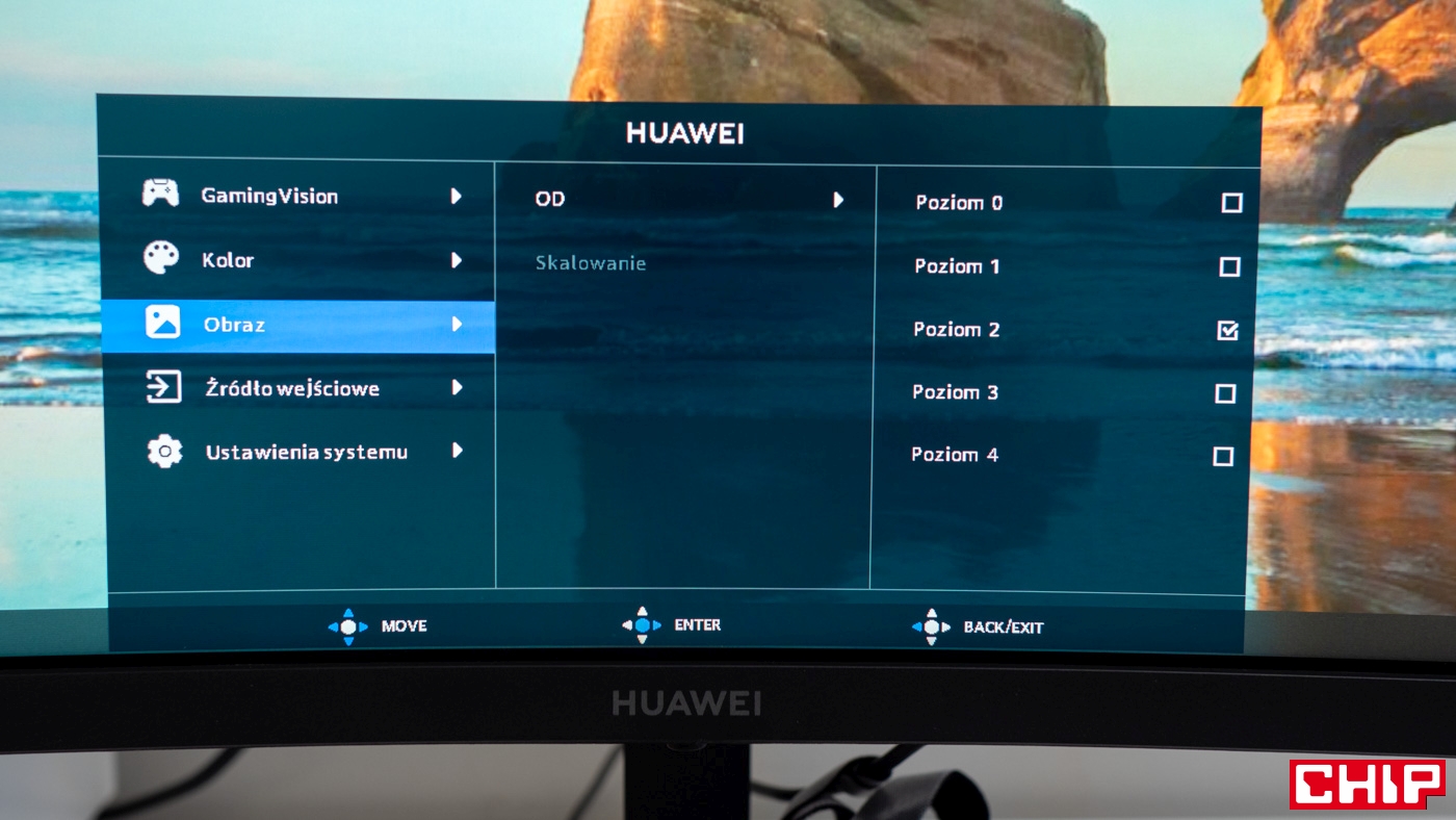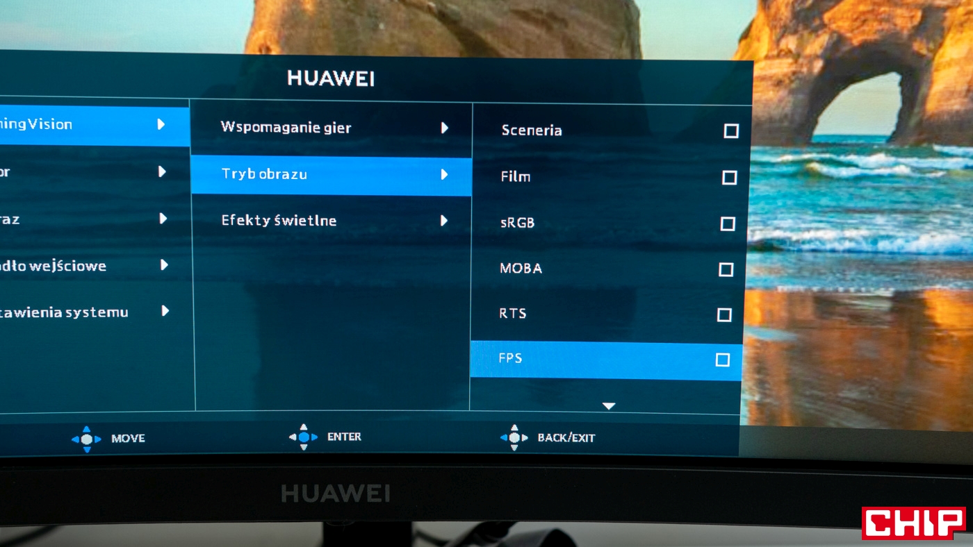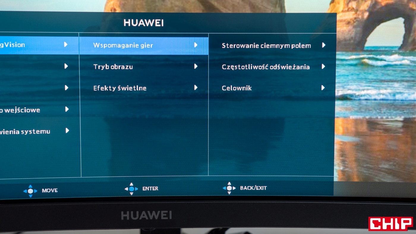 Menu Huawei MateView GT jest bardzo przejrzyste i nie znajdziemy w nim żadnych zbędnych opcji. Wśród funkcji gamingowych mamy dobrze działające rozjaśnienie ciemnych elementów obrazu oraz możliwość włączenia celownika o różnej formie. Do tego mamy opcje wyboru schematu kolorów, w zależności od typu gry. Jak jestem sceptycznie nastawiony do tego typu udziwnień, tak tutaj nawet nieźle to działa. Oczywiście nie zabrakło możliwości wyświetlania aktualnej liczby generowanych klatek na sekundę w trakcie rozgrywki.