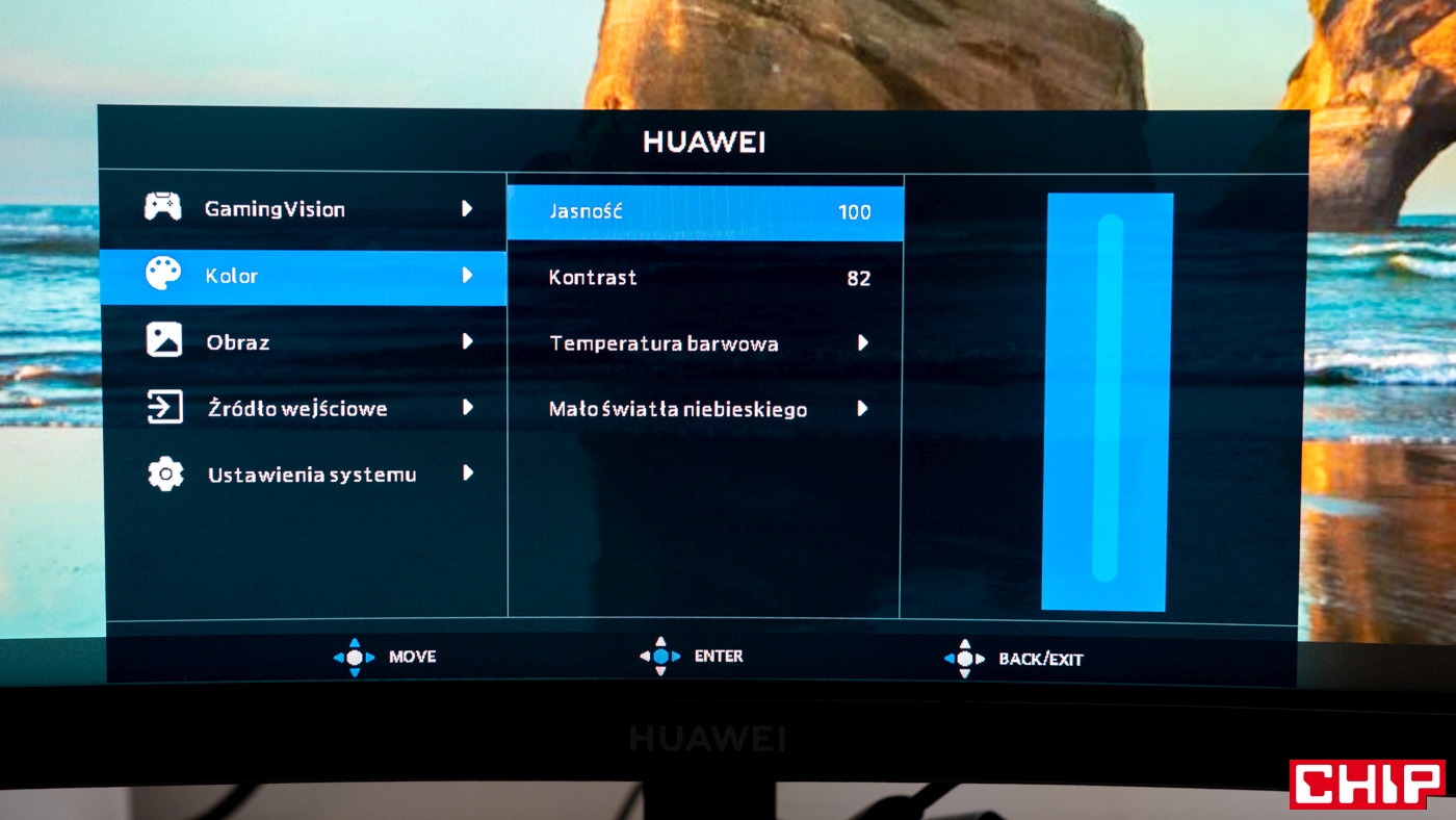 Huawei MateView GT ma stosunkowo niewielki promień zakrzywienia ekranu, w porównaniu do niektórych rynkowych konstrukcji. Mimo wszystko dyskwalifikuje to monitor w niektórych zastosowaniach. Kiedy pierwszy raz chciałem obrobić na nim zdjęcia… zgłupiałem. To dystorsja obiektywu, czy krzywy ekran? Okazało się to kwestią przyzwyczajenia, ale próba obrabiania tutaj zdjęć z bardzo szerokokątnych obiektywów, architektury, aut czy krajobrazów, może być nieco karkołomnym zadaniem. Chyba że przesuniemy okno programu do edycji np. na połowę ekranu.