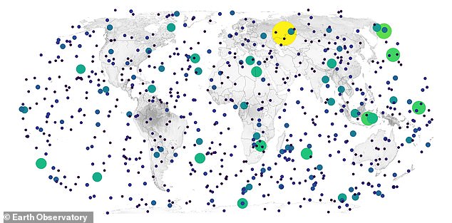 Powstała w ten sposób mapa, widoczna poniżej, składa się z kropek oznaczonych czterema różnymi rozmiarami i kolorami. Jak nietrudno się domyślić, parametry te są proporcjonalne do energii kinetycznej każdego z bolidów. To właśnie, między innymi wraz z falami dźwiękowymi, umożliwia określenia rozmiarów kosmicznych skał jeszcze zanim w ogóle znajdą się w obrębie atmosfery naszej planety.