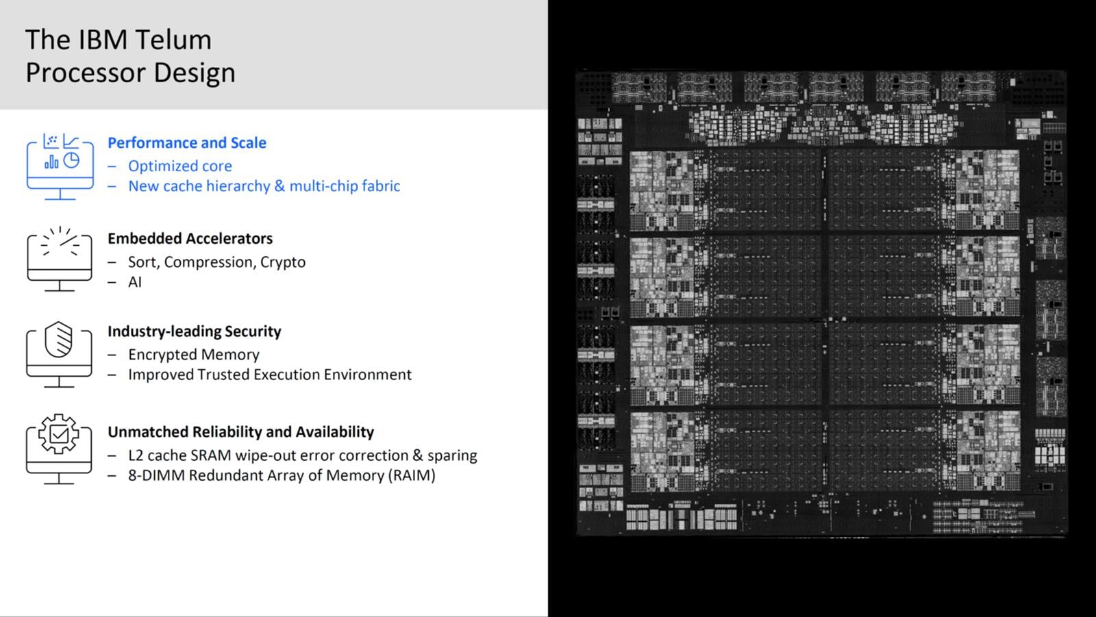 Dzięki 7 nm procesowi Samsunga Telum nowej generacji będzie oferował aż 22,5 miliarda tranzystorów i jako procesor przeznaczony do zastosowań profesjonalnych, będzie kusił wydajnością, która ponoć jest o 40% wyższa względem poprzedniej generacji. Te procesory będzie też można łatwo skalować w celu uzyskania jeszcze większej wydajności.
