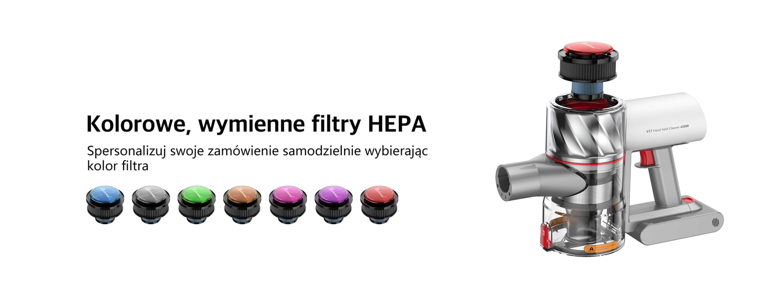 Podwójne filtry HEPA z węglem aktywnym zadbają o czystsze powietrze w domu – RedRoad V17 jest wyposażony w system filtracji Mandali trzeciej generacji. Wlot H12 HEPA chroni 12-stożkowy silnik, wydłuża jego żywotność, a wylot H13 HEPA sprawia, że wypuszczane powietrze jest czystsze niże te, którym zwykle oddychamy. Filtry mogą wychwytywać 99,97% drobnych cząstek w skali 0,1 mikrona, w tym roztoczy, pleśni, pyłki czy sierści zwierząt domowych, chroniąc dzieci i osoby z nieżytem nosa lub astmą.