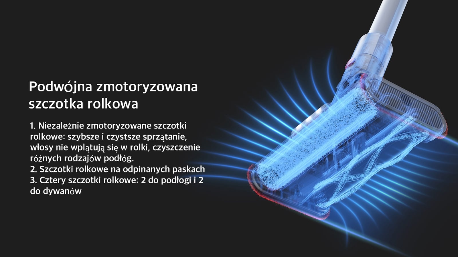 Wielokierunkowa szczotka rolkowa z napędem silnikowym jest łatwa do manewrowania, a dzięki kółkom 360° dotrzemy do każdego zakamarka bez podnoszenia odkurzacza czy niewygodnego przekręcania nadgarstka.