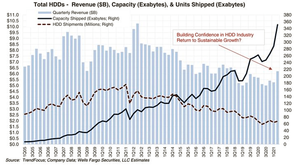 Tak więc, wedle statystyk w II kwartale bieżącego roku sprzedano dyski o łącznej pojemności dysków około 351,4 EB, co jest równoznaczne z 45% wzrostem w porównaniu do poprzedniego roku i 22% wzrostem w porównaniu z ubiegłym kwartałem. Średnio pojemność sprzedanych HDD wyniosła 5,45 TB.