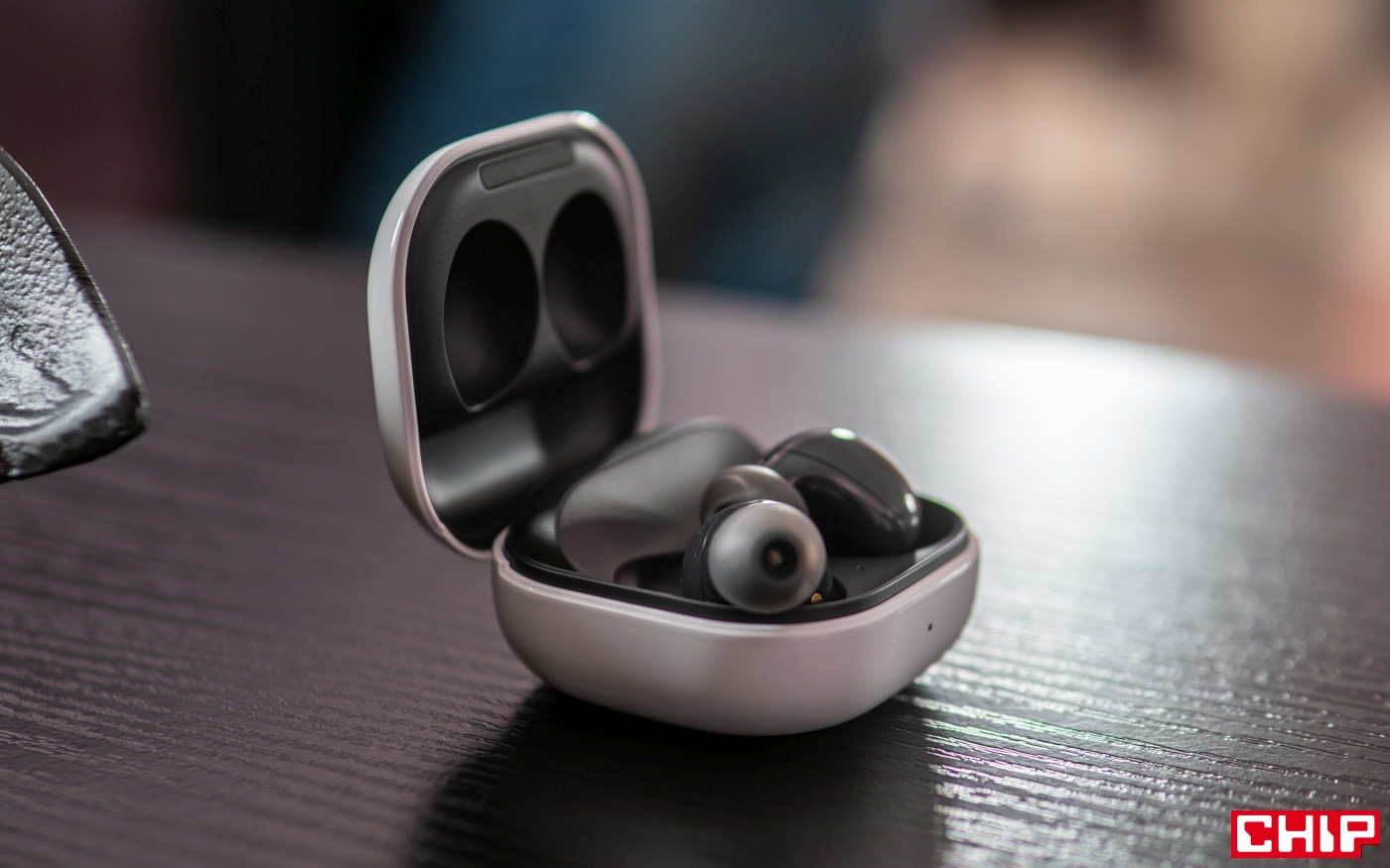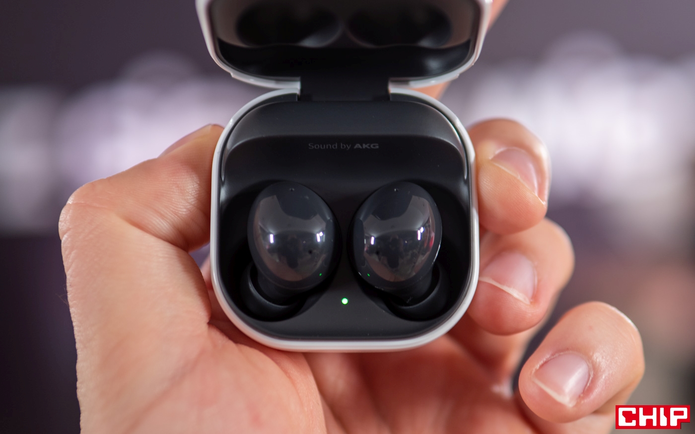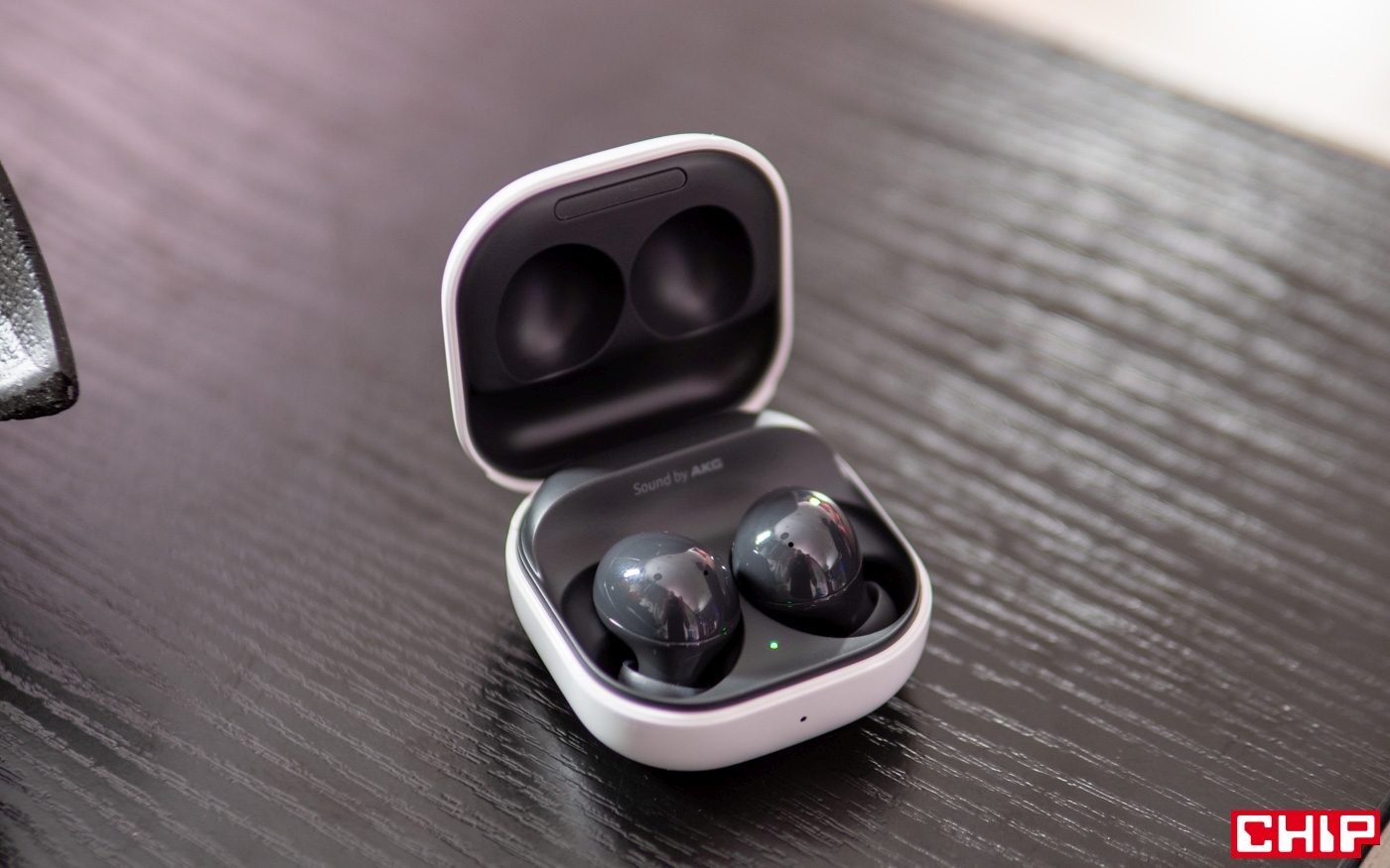 Podobnie wygląda sytuacja ze słuchawkami. Galaxy Buds2 są malutkie, ładne, bardzo dobrze wykonane i… też mogę je Wam pokazać na zdjęciach. Dodam tylko małą ciekawostkę. Słuchawki są wyposażone w zupełnie nową funkcję, która powie nam czy są dobrze dopasowane. Jak to działa? Słuchawki emitują dźwięk, a mikrofony sprawdzają, ile dźwięków ucieka nam z ucha. To jest przekładane na informację o tym, czy prawidłowo je dopasowaliśmy. Ciekawi mnie jak to działa w praktyce i mam nadzieję, że już niedługo Was o tym poinformujemy.