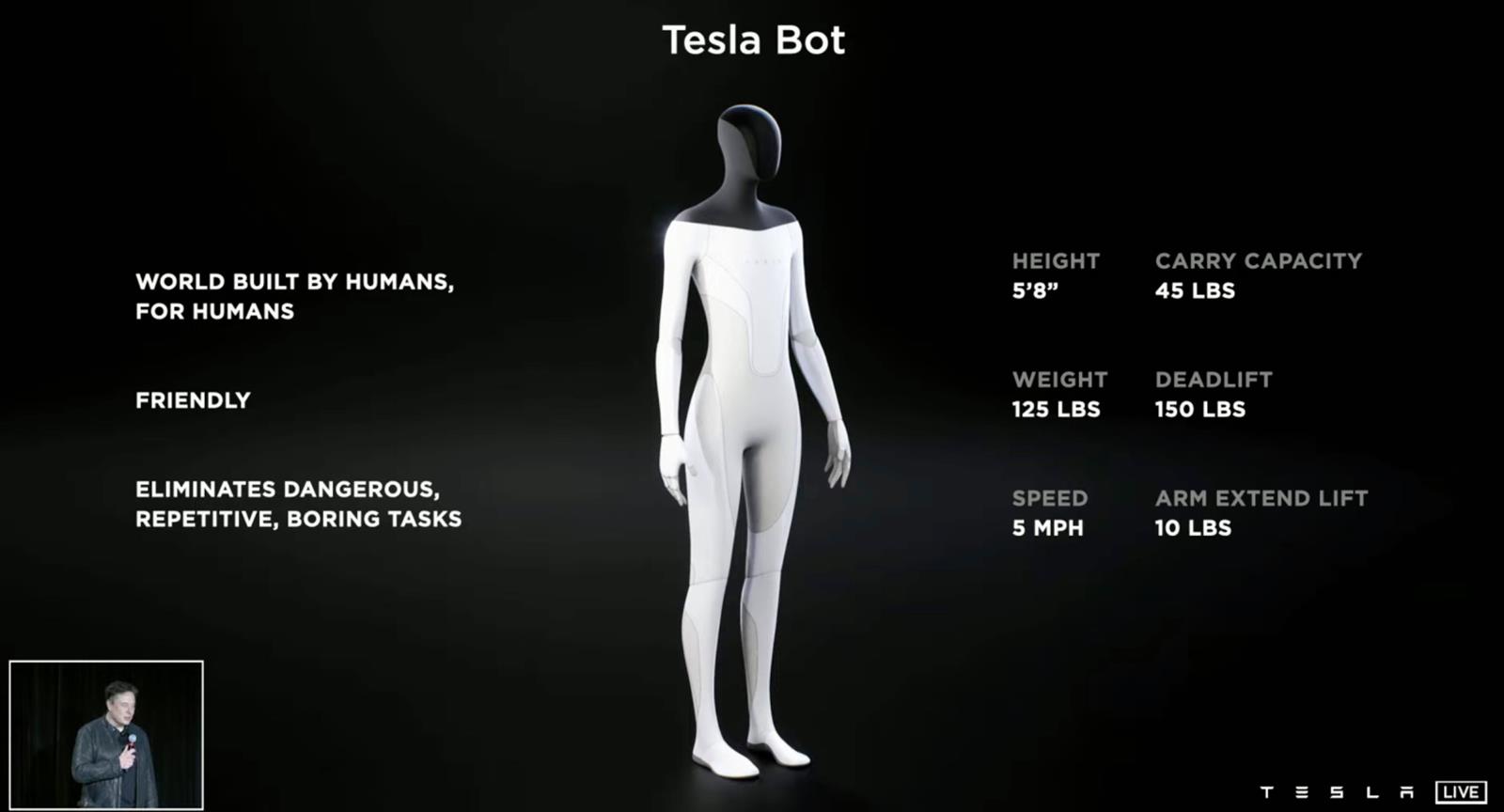 Jedno na pewno trzeba Tesli oddać – Tesla Bot, to zdecydowanie nie produkt “z czapy”, bo związane z nim systemy firma rozwija już od lat w ramach autonomii w swoich samochodach. Według prowadzącego prezentację Elona Muska, będącego też właścicielem firmy, Tesla Bot ma „nawigować po świecie zbudowanym dla ludzi i eliminować [z naszego życia – dop. red.] niebezpieczne, powtarzalne, nudne zadania”. Innymi słowy, ma być naszym osobistym pomocnikiem.