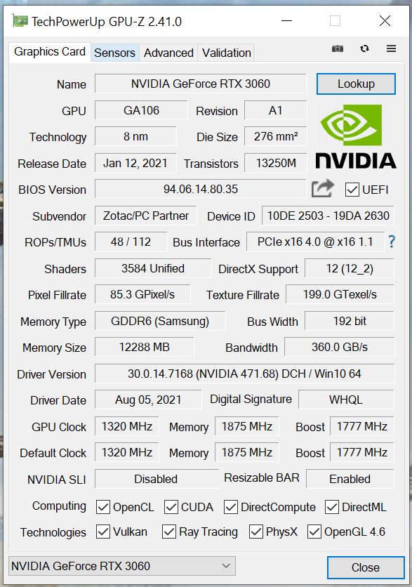 - Karta graficzna: ZOTAC GeForce RTX 3060 12GB + zintegrowana Intel UHD 630