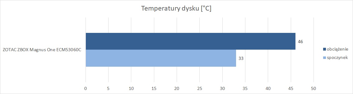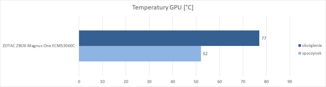 W spoczynku ZOTAC ZBOX Magnus One ECM53060C? trochę szumi i nie jest idealnie cichy, ale nie powinno to przeszkadzać. Natomiast pod obciążeniem robi się już głośno i to może przeszkadzać w pracy. Natomiast nie ma co liczyć, że przy takiej specyfikacji jakikolwiek mini PC pozostanie cichy.