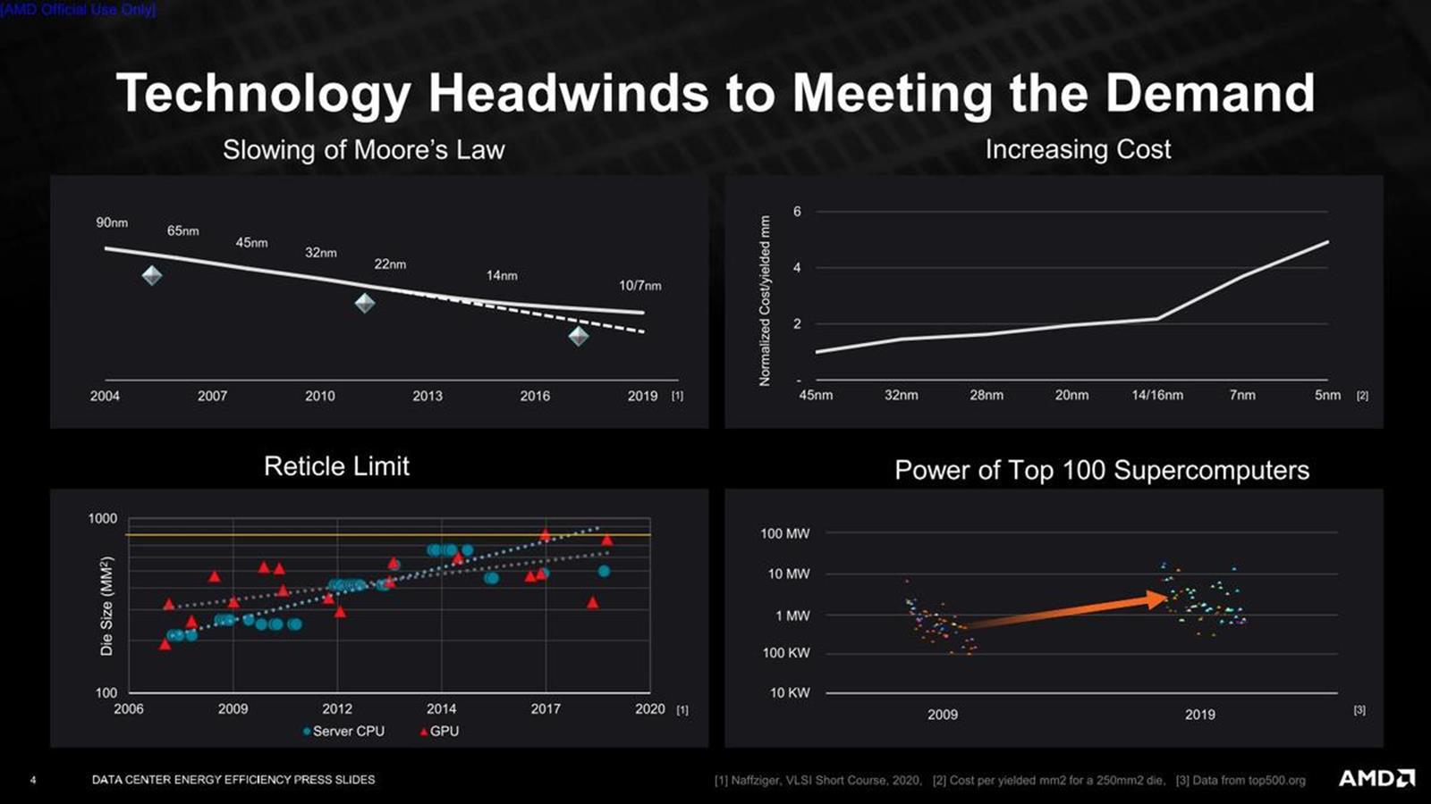 Może być to dla Was zaskoczeniem, ale przez ostatnie lata AMD udało się znacząco poprawić efektywność energetyczną swoich produktów. Świetnym tego przykładem jest fakt, że procesory graficzne firmy znalazły się w elektrycznych samochodach Tesli, gdzie zużycie energii jest kluczowe czy w konsolach nowej generacji (tutaj bez zaskoczeń). W tych z kolei niski pobór jest jeszcze ważniejszy, bo pozwala na ich utrzymanie w możliwie najbardziej kompaktowych obudowach bez potrzeby stosowania ogromnych chłodzeń. Teraz dowiedzieliśmy się, że w tej kwestii będzie tylko lepiej, co potwierdzają nowe ambitne plany AMD w dziedzinie HPC.
