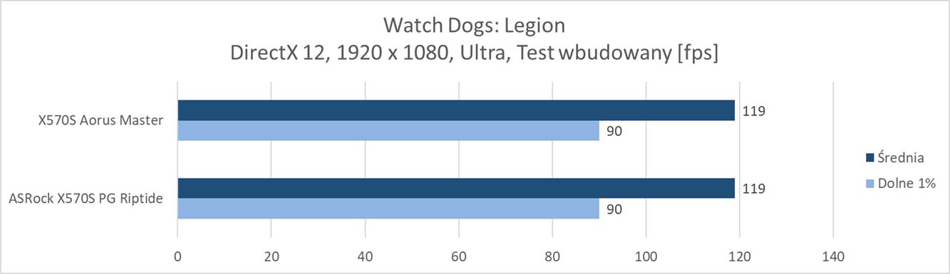Na koniec przeprowadziłem testy w trzech grach: Watch Dogs: Legion, Shadow of the Tomb Raider oraz Metro Exodus. Testy wykonałem w rozdzielczości 1920 x 1080 px przy ustawieniach kolejno: Ultra, Najwyższe i Ultra. Ray tracing czy DLSS pozostawał zawsze wyłączony. Testy przeprowadziłem przy wykorzystaniu wbudowanych w gry benchmarków.
