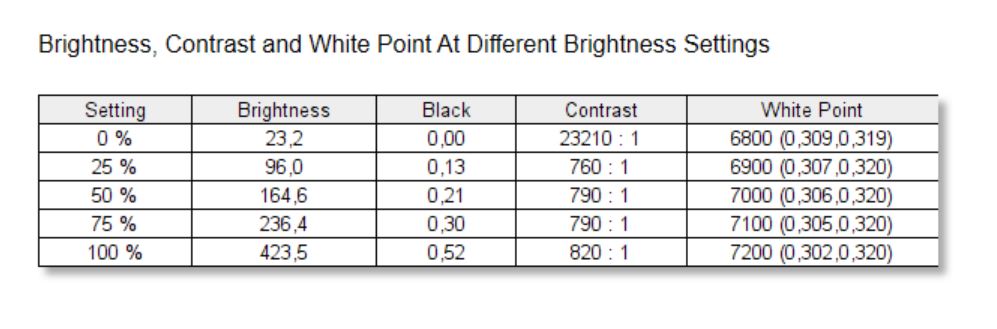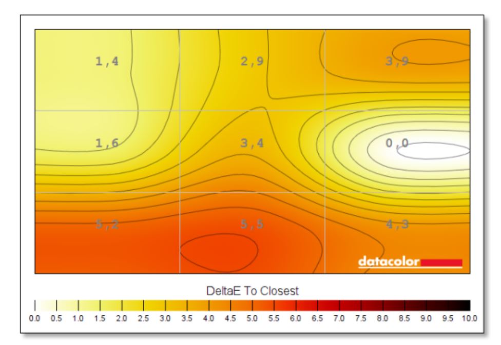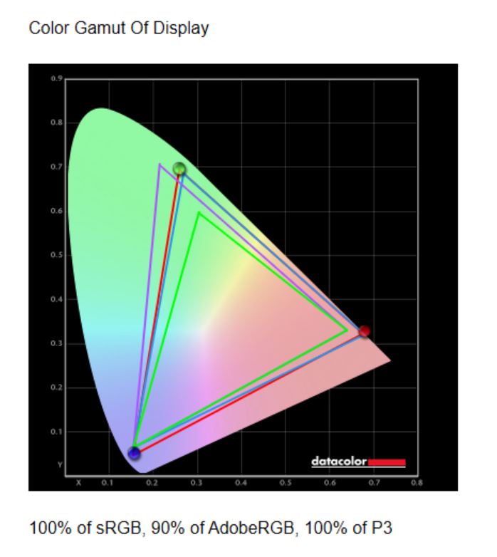 Testy jednoznacznie wskazują na świetną jakość matrycy. Pokrycie kolorów sRGB to 100%, a DCI-P3 również 100%. Jedynie AdobeRGB to 90%. Gamma jest idealna i wynosi 2,2. Maksymalna jasność to 424,5 cd/m^2 i to deklarowanych 500 cd/m^2. Punkt bieli przy maksymalnej jasności to 7200K, a kontrast 820:1. Tutaj punkt bieli mógłby być bliższy idealnego. Różnice w kolorach oraz podświetleniu na całej matrycy to chyba największy minus testowanego urządzenia. Tutaj wyniki mogły by być lepsze, choć nie jest źle. Natomiast średnia Delta-E wyszła 0,96, co jest znakomitym wynikiem. Matryca jest więc bardzo dobrej jakości.