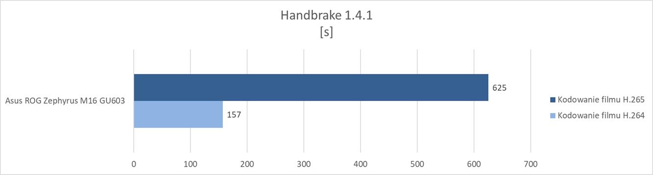 Wersje programów, jakie wykorzystałem w testach, znajdziecie na wykresach. Testy Handbrake polegały na sprawdzeniu czasu konwersji filmu .mp4 o długości 10 minut i 33 sekund do H.264 i H.265 (1080p30). W testach 3DMark wykorzystałem benchmarki dostępne w darmowej wersji programu.