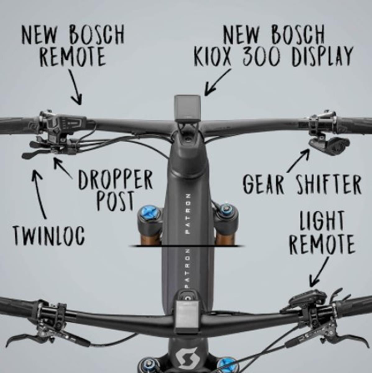 Na kierownicy Patron eRide 2022 nieco zaszalano i tak też, jak ukryte okablowanie zrobiło swoje, to nagromadzenie na niej osprzętu znacznie skomplikowało cały design. Obok kolorowego wyświetlacza Kiox 300 Boscha znalazła się tam nawet specjalna linka do całkowitego blokowania przedniego widelca, czyli coś niekoniecznie aż tak potrzebnego. Z dodatkowych funkcji nie zabrakło modułu Bluetooth, GPS, akcelerometru czy czujnika kadencji.