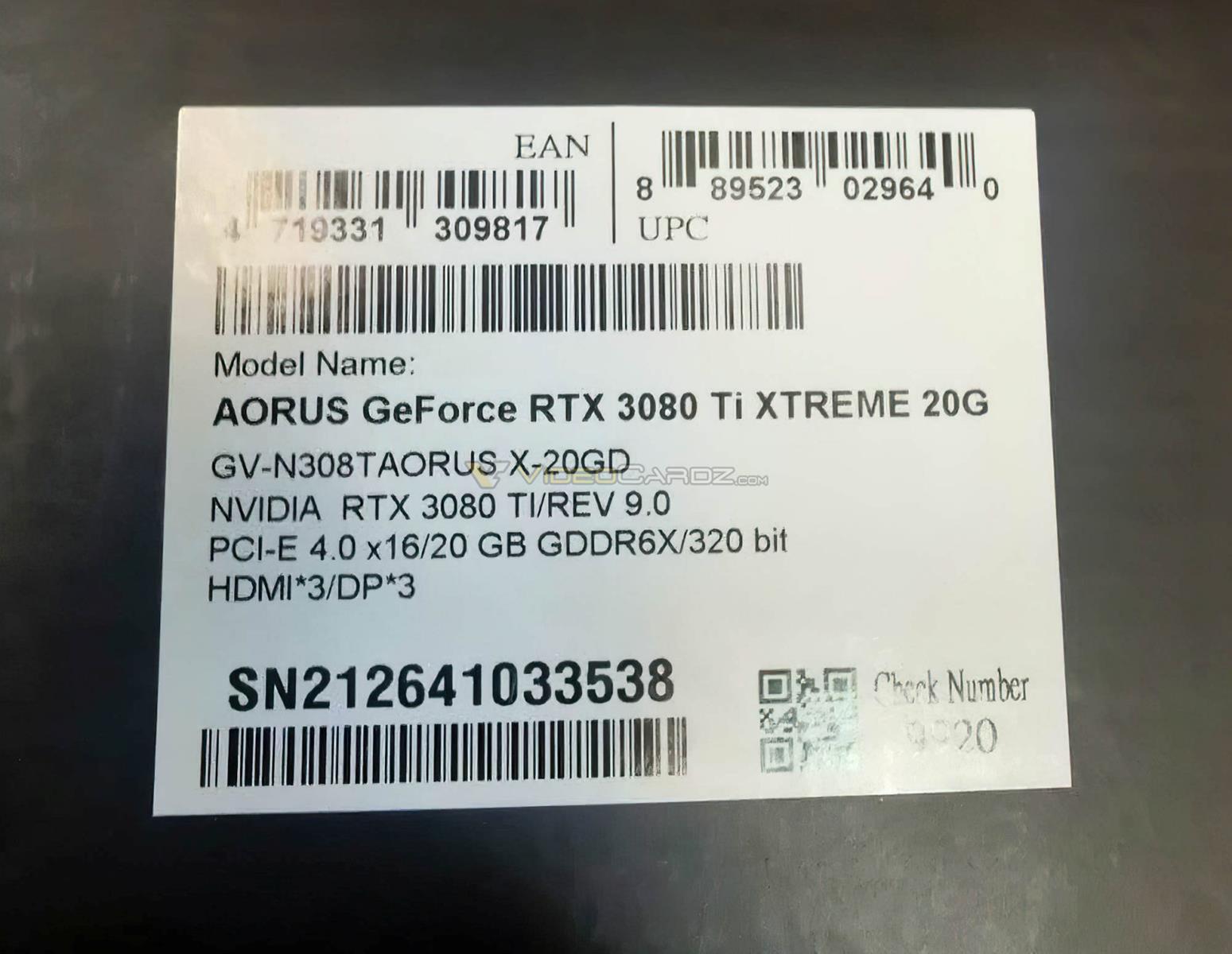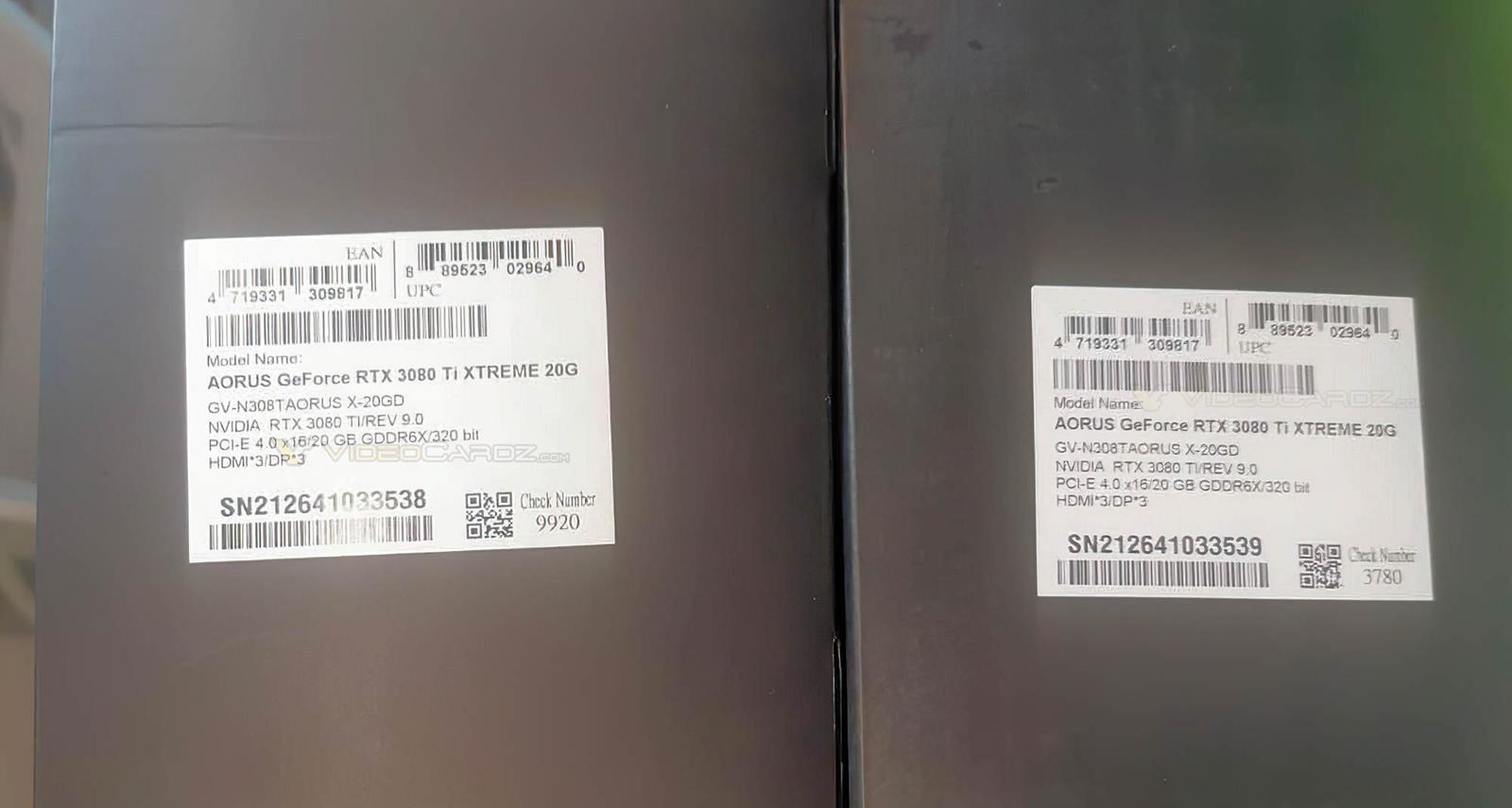 Jak się jednak okazuje, niektóre z pierwotnie planowanych modeli GeForce RTX 3080 Ti 20 GB mogły trafić do centrów dystrybucyjnych. Przynajmniej jeśli idzie o ich opakowania, co potwierdzają cztery powyższe zdjęcia, ujawniające karty AORUS XTREME (GV-N308TAORUS X-20GD) od Gigabyte, czyli dokładnie te, które wcześniej pojawiły się w wycieku z EEC.