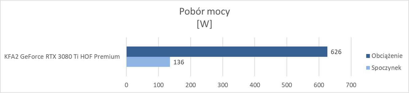 Test KFA2 GeForce RTX 3080 Ti HOF Premium w trybie P-Mode pobiera najwięcej mocy spośród testowanych modeli. W S-Mode znacznie on spada, ale jest to spodziewany efekt.