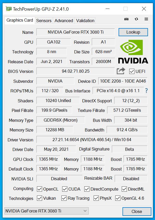 - RTX 3080 Ti: Nvidia Game Ready 466.54