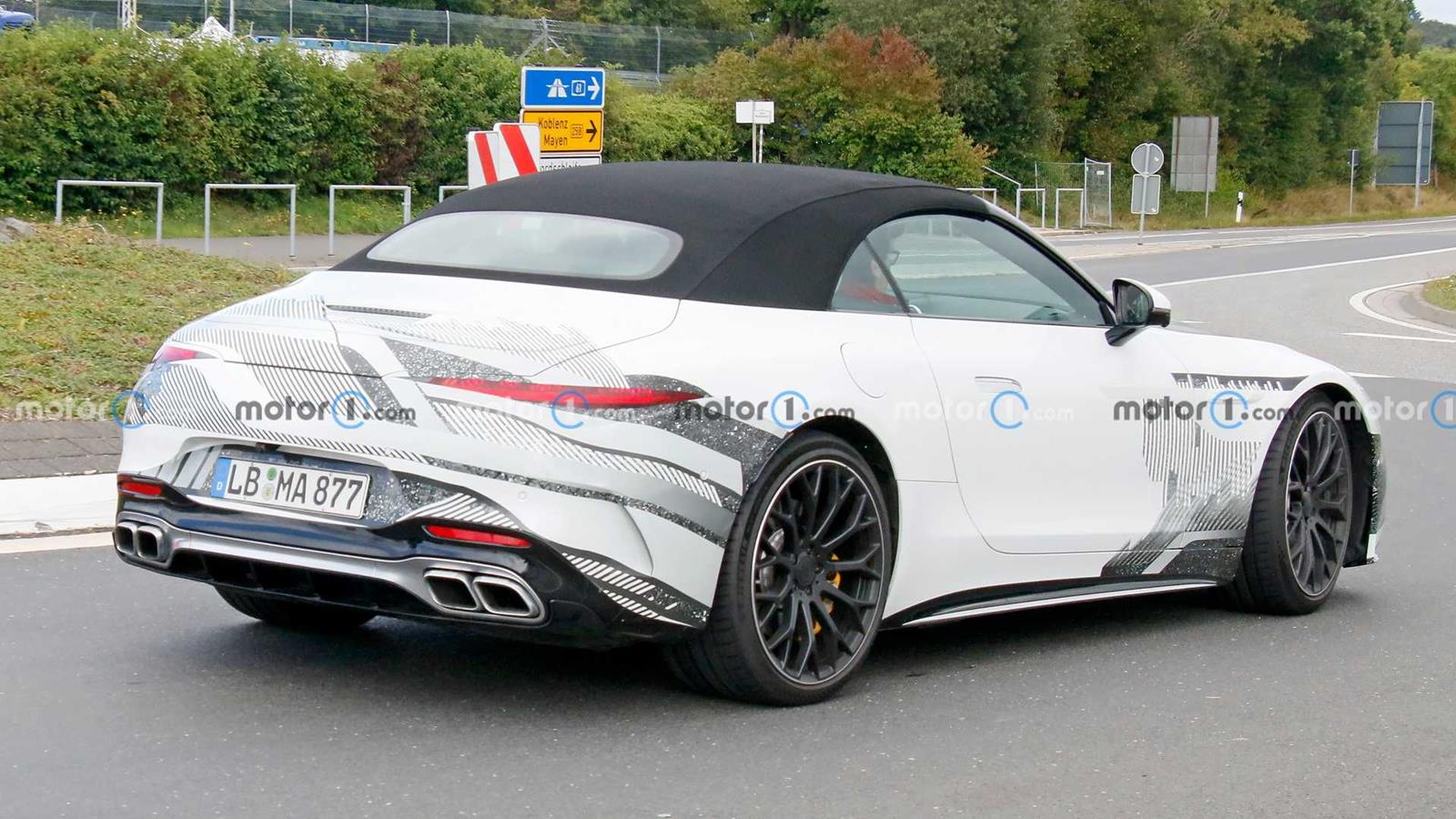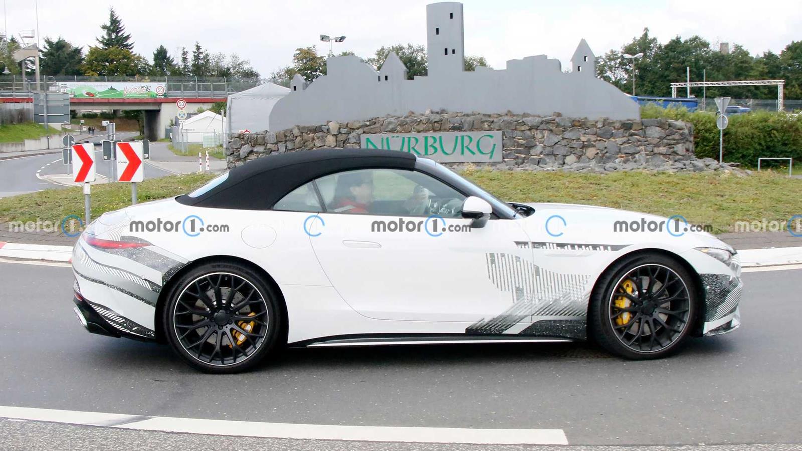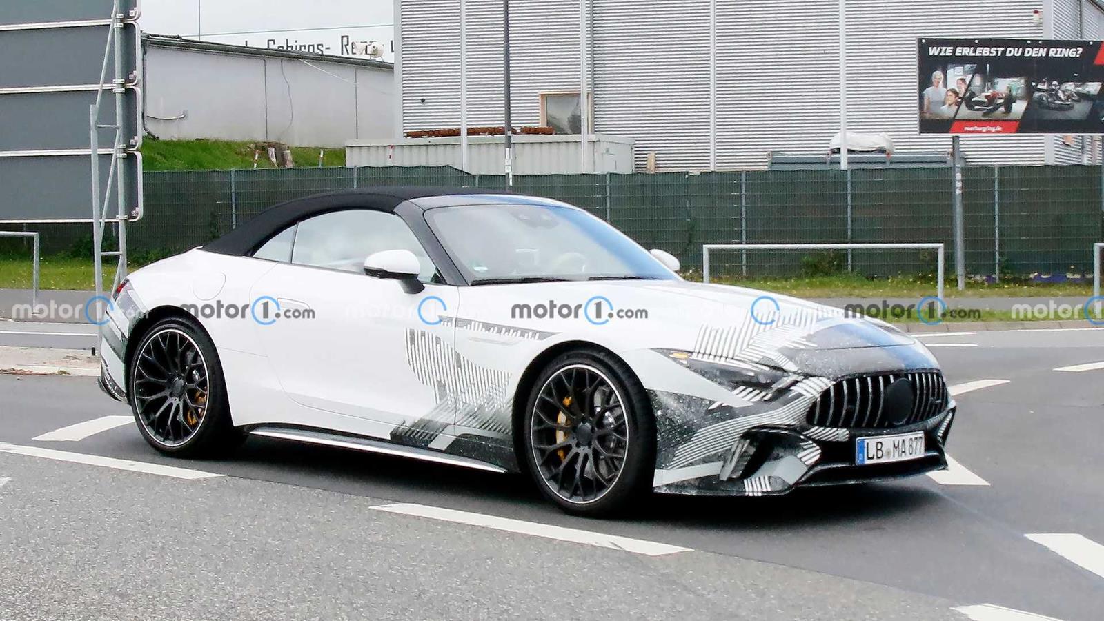 Poniższe zdjęcia zostały wykonane w pobliżu toru Nurburgring i choć nieco kamuflażu ciągle zasłania reflektory, jak i drobne elementy na obu końcach, to w rzeczywistości taka ilość maskowania nie ukrywa niczego specjalnego. Ponownie widzimy więc zarówno wysuwane klamki drzwi, jak również powracający po przerwie dach z tkaniny, który ostatnie modele SL wykorzystywały w generacji R129, czyli tej z lat 1989-2001.