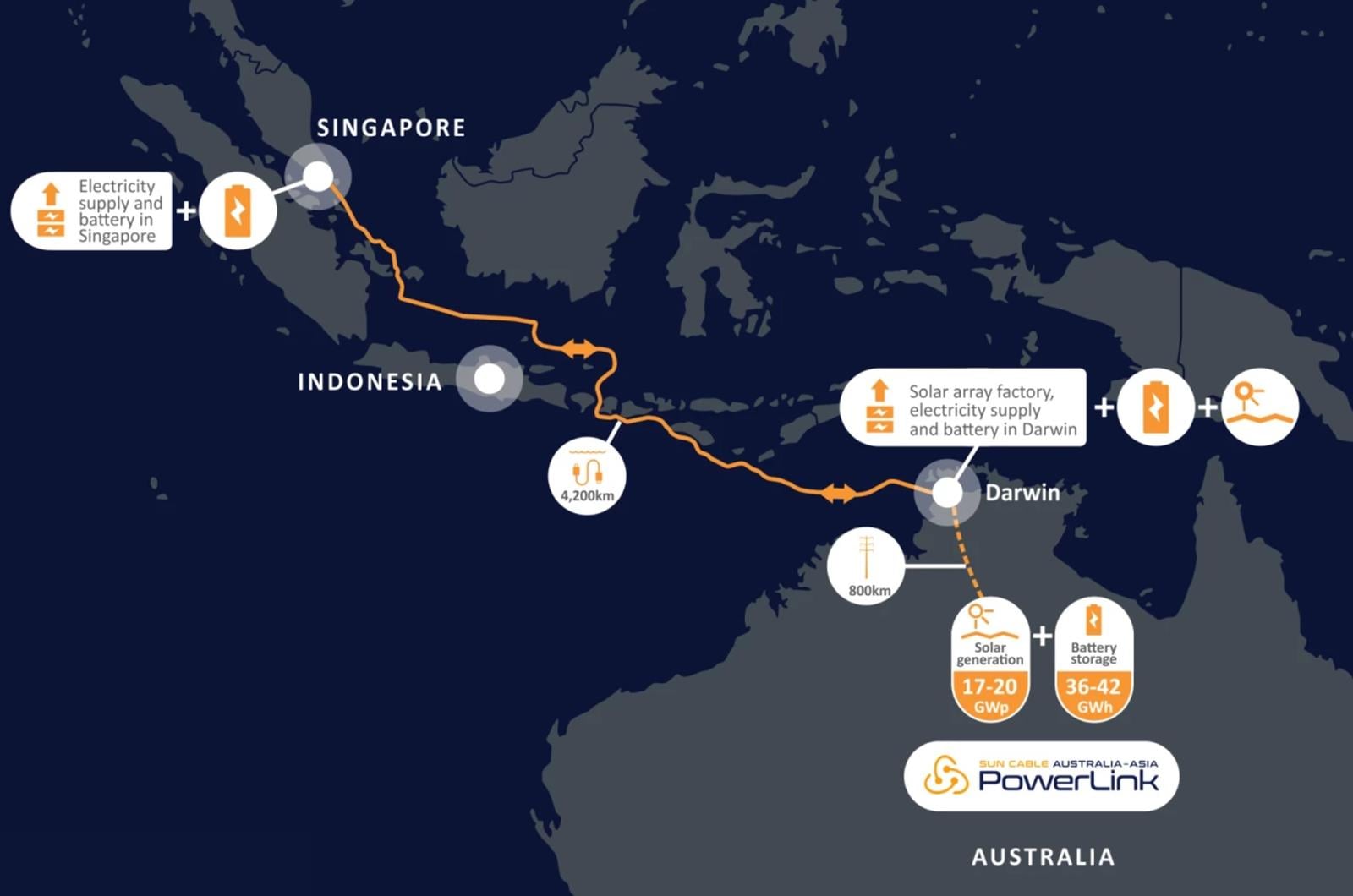 Będzie ono miejscem dla instalacji „Powell Creek Solar Precinct”, generującej w idealnych warunkach od 17 do 20 gigawatów energii elektrycznej z promienni słonecznych, której część ma być przechowywana w lokalnych magazynach o pojemności około 36-42 GWh. To jednak nie koniec imponujących liczb, bo ta instalacja w Australii będzie zapewniać energię oddalonemu o ponad 3351 kilometrów w linii prostej Singapurowi, czyli miastu-państwu w Azji.