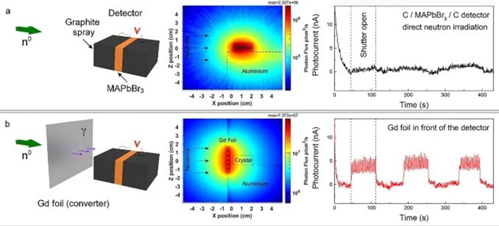 W tym badaniu postawiono na tribromek ołowiu metyloamoniowego (MAPbBr3), czyli szczególny perowskit wrażliwy na neutrony. Kryształy tego materiału zostały wystawione na działanie źródła neutronów, które wnikały do ich jąder atomowych, pobudzając je do wyższego stanu energetycznego. Generuje to promienie gamma, które ładują perowskit i wytwarzają mierzalny prąd, który wymagał wzmocnienia, aby stał się przydatny.