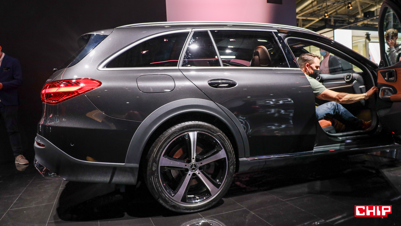 Było elektrycznie i hybrydowo, więc na koniec pozostaje nam spalinowa Klasa C w wersji All-Terrain z nadwoziem typu kombi. Ten model zaliczył już debiut w sierpniu, ale dopiero teraz został publicznie pokazany i co tu dużo mówić, idealnie pokazuje, że zaledwie 40-milimetrowe podbicie wysokości sprawia, że odbiór modelu odwraca się o 180 stopni. Teraz to model (tutaj w wydaniu z 2-litrowym silnikiem diesla), którym podbój terenu byłby zdecydowanie przyjemniejszy.