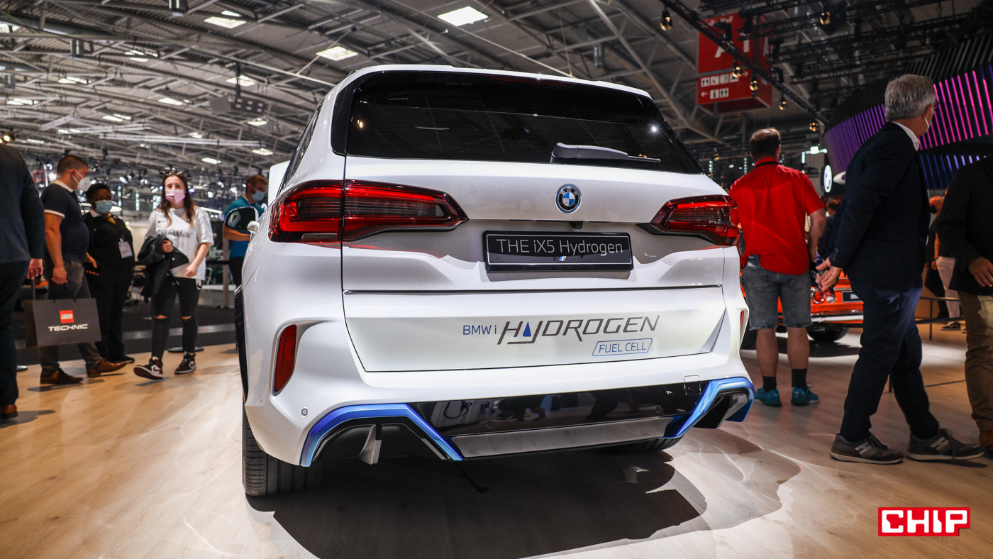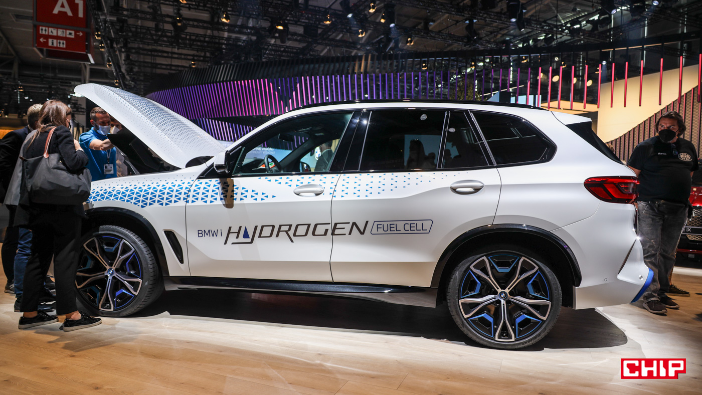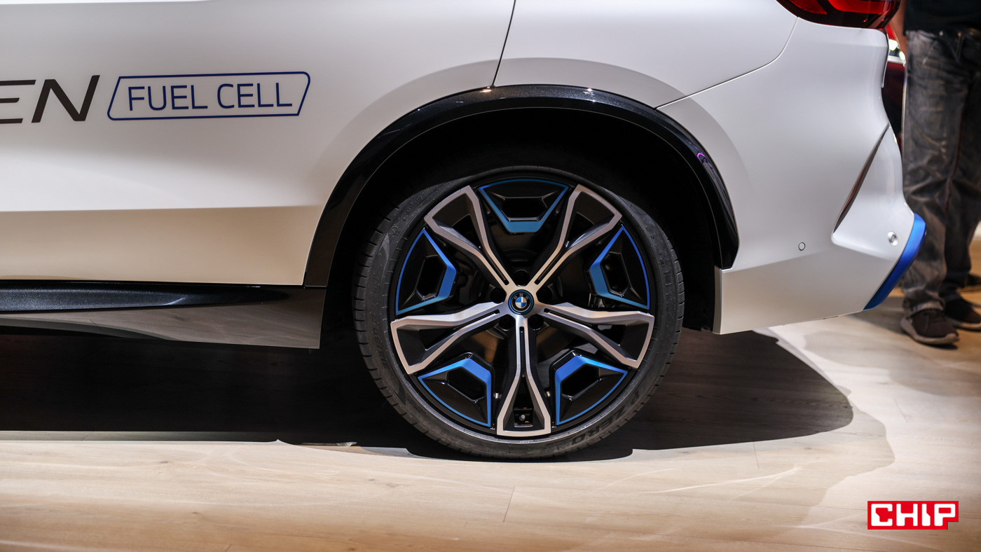 BMW iX5 Hydrogen wytwarza na ogół 125 kilowatów mocy, ale może wycisnąć nawet 275 kW, dzierżąc około 6 kilogramów wodoru w dwóch plastikowych zbiornikach wzmocnionych włóknem węglowym.