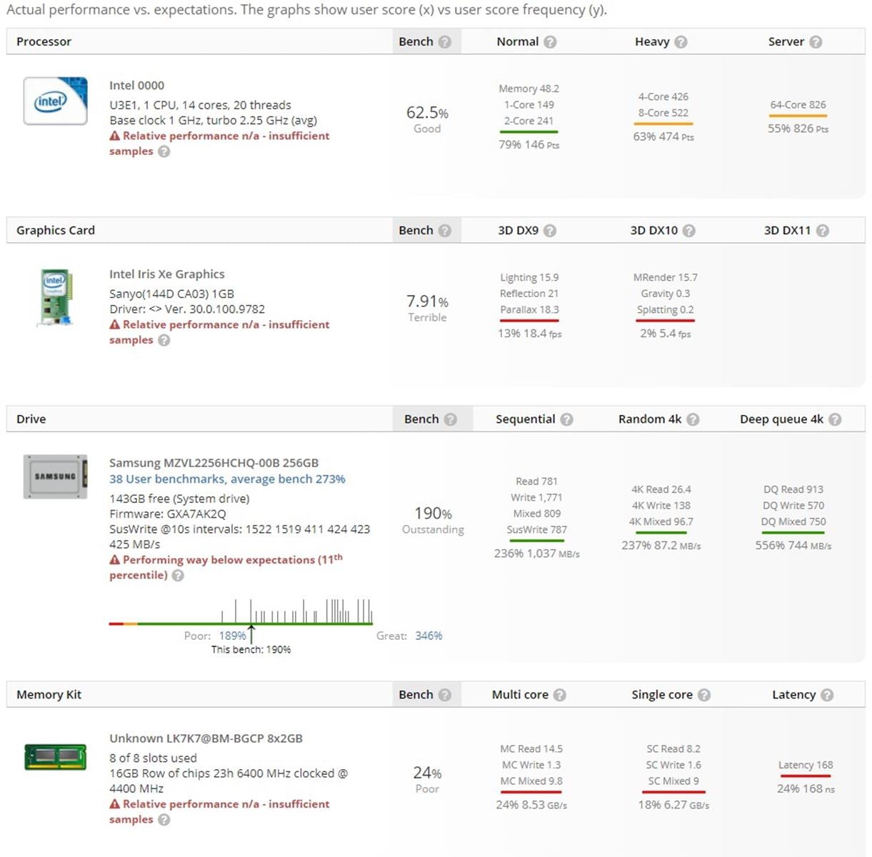 Wpis w UserBenchmark dotyczy sprzętu Samsunga o numerze kodowym NP_930QED, który w teorii nie mówi nam nic, ale w praktyce na tle wpisów w podobnych bazach danych z przeszłości, jest bezpośrednim wskazaniem na rodzinę laptopów Galaxy Book. Jeśli nawet to Wam nie wystarczy, dobrze, żebyście wiedzieli, że wpis ten pochodzi prosto z laboratorium testowego w Hongkongu w Chinach.