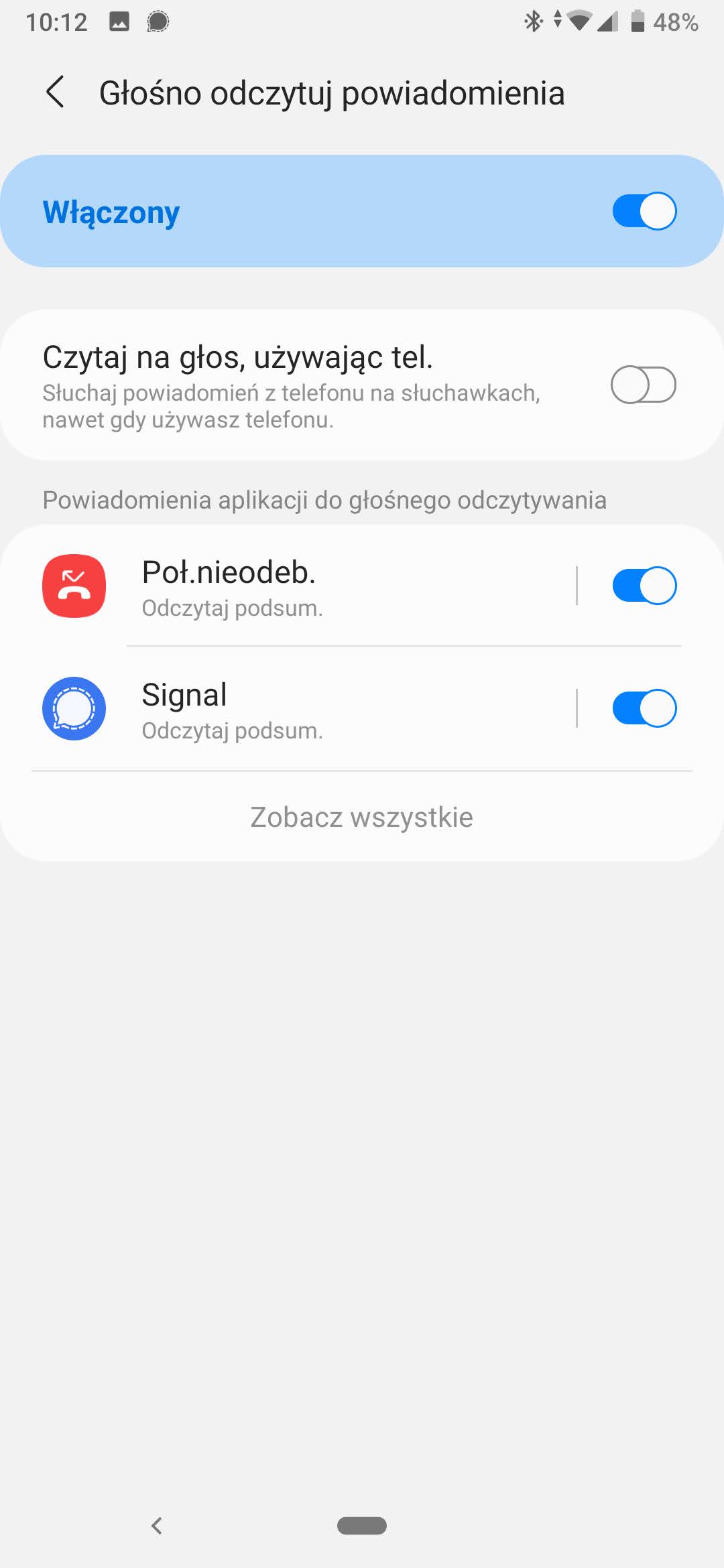 - opcję odczytywania powiadomień, która będzie wyczytywać na głos nazwę aplikacji związaną z powiadomieniem (np. Signal),