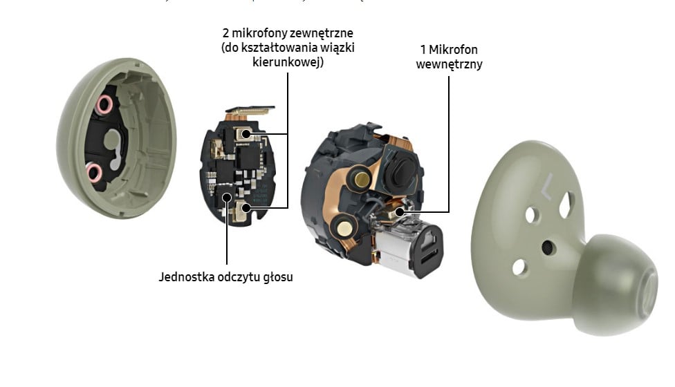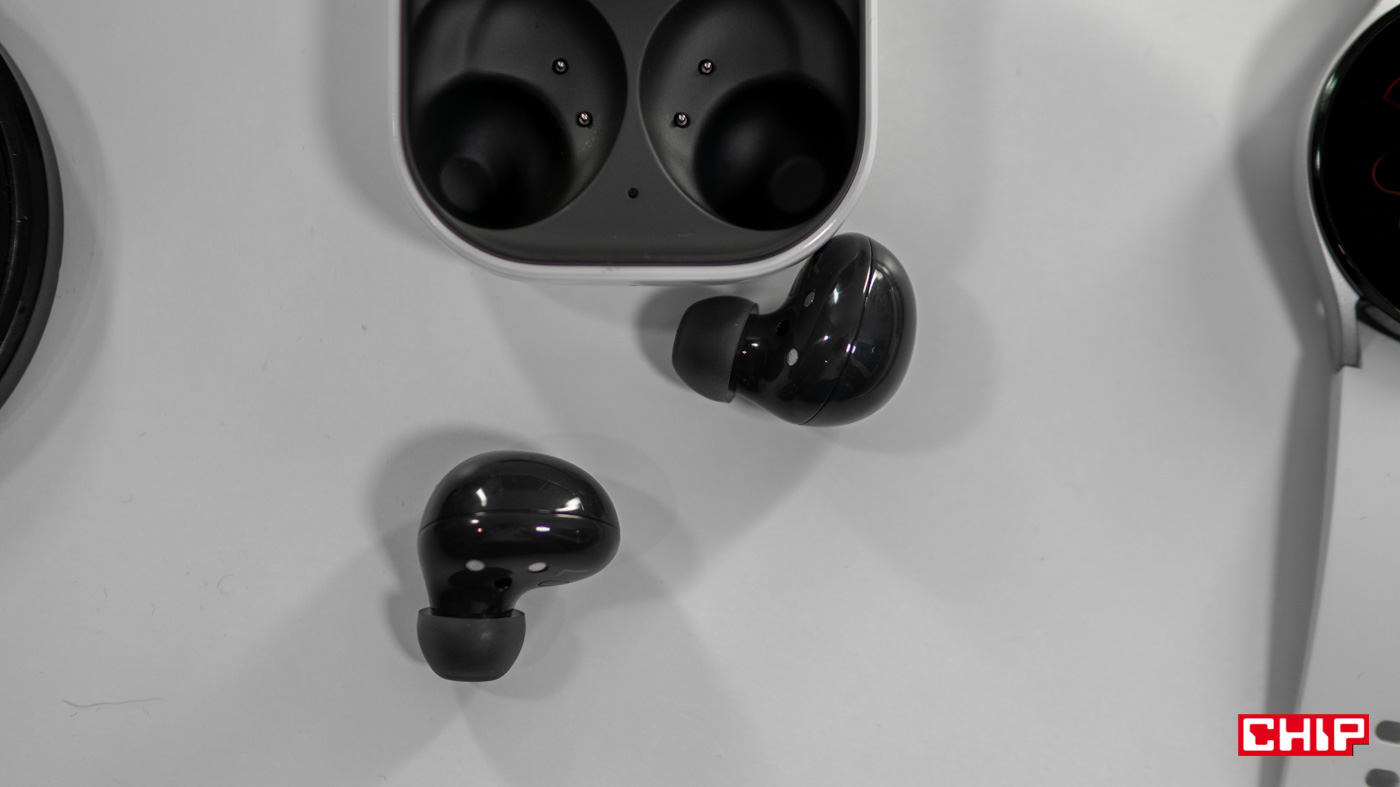 Każda z tych najnowszych słuchawek ANC Samsunga waży zaledwie 5 gramów, co łatwo odczuć… bo po dobraniu odpowiedniego rozmiaru gumek o słuchawkach w uszach można zapomnieć. Niewiele modeli na rynku sięga po tego typu kształty, dlatego Samsungowi ewidentnie się to opłaciło.