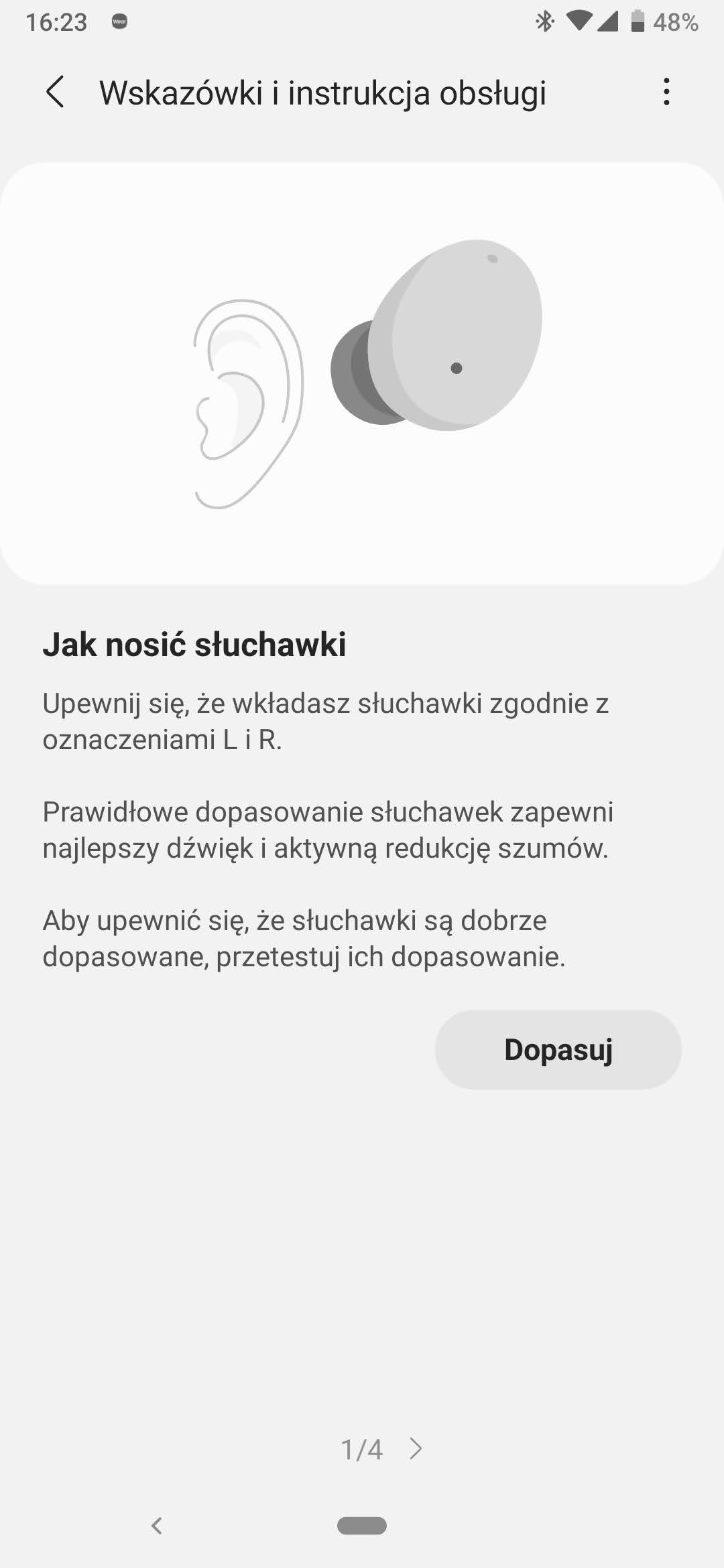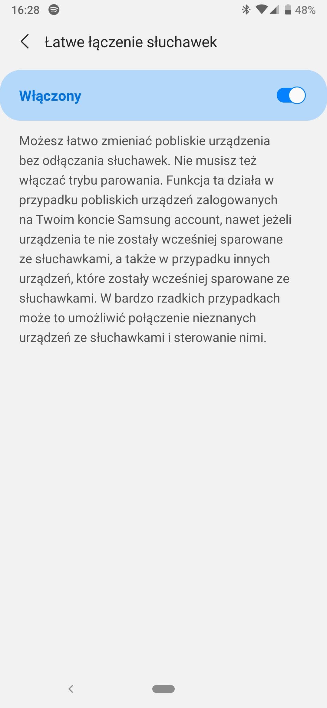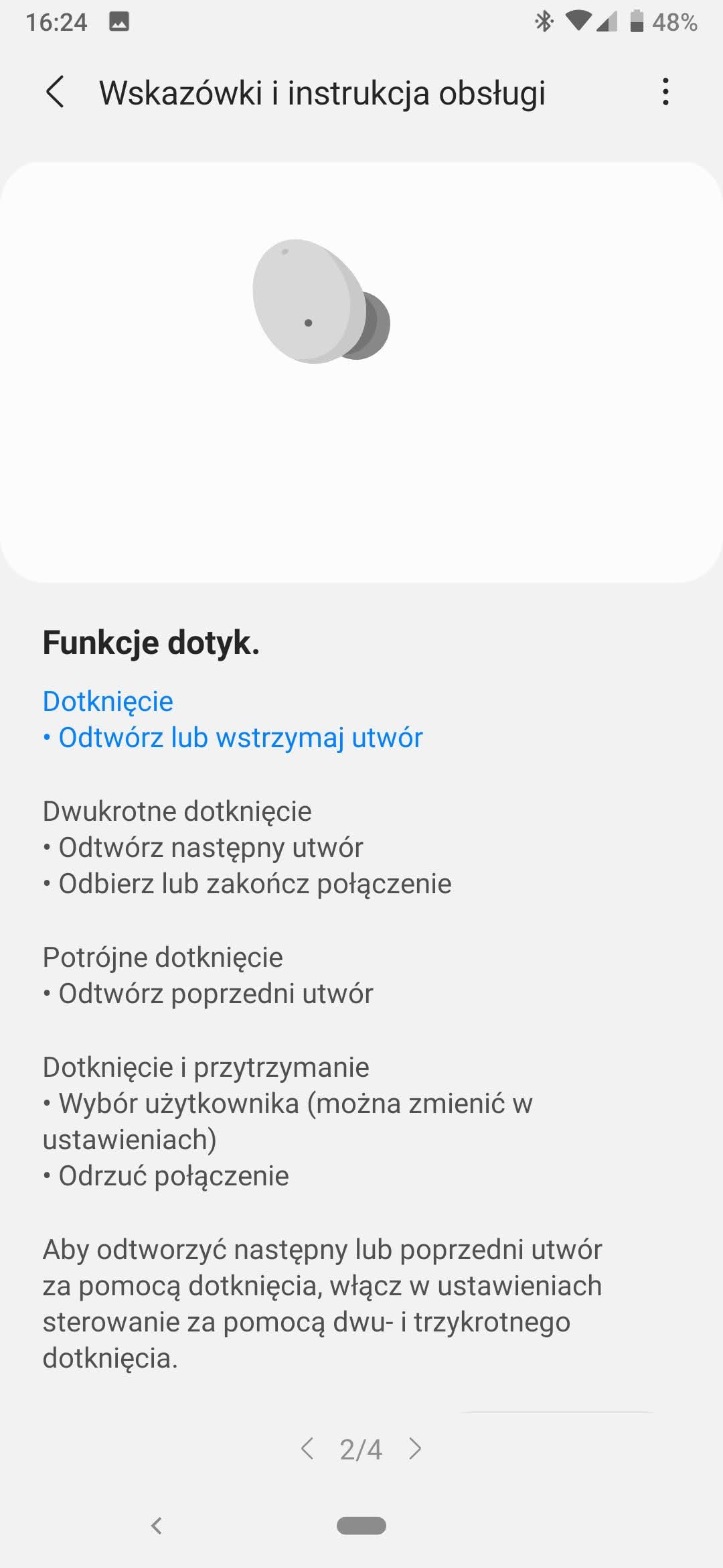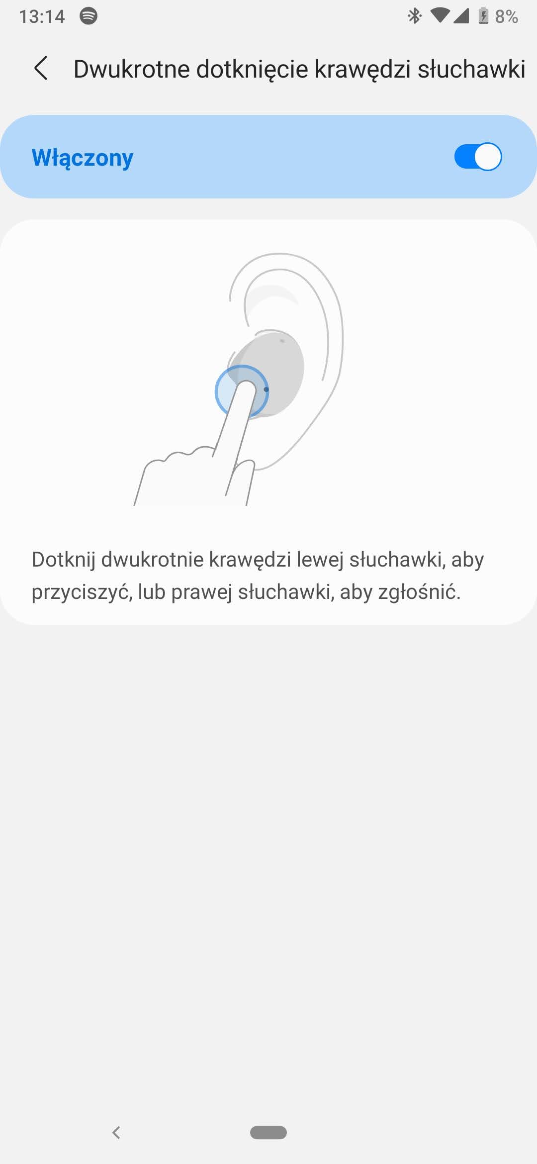 Samsung postanowił odgraniczyć nieco Galaxy Buds2 od wersji Buds Pro kilkoma cięciami funkcji, wśród których zdecydowanie najbardziej zauważalnym jest brak automatycznego pauzowania/wznawiania odtwarzania po wyjęciu/wsadzeniu jednej słuchawki. Pauza ma miejsce dopiero po wyciągnięciu obu z nich, ale nawet jak włożymy je z powrotem, utwory nie zostaną wznowione. Nie zabrakło jednak małych ciekawostek pokroju dezaktywacji ANC po wyłożeniu jednej ze słuchawek czy szybkiego parowania już po otworzeniu Etui