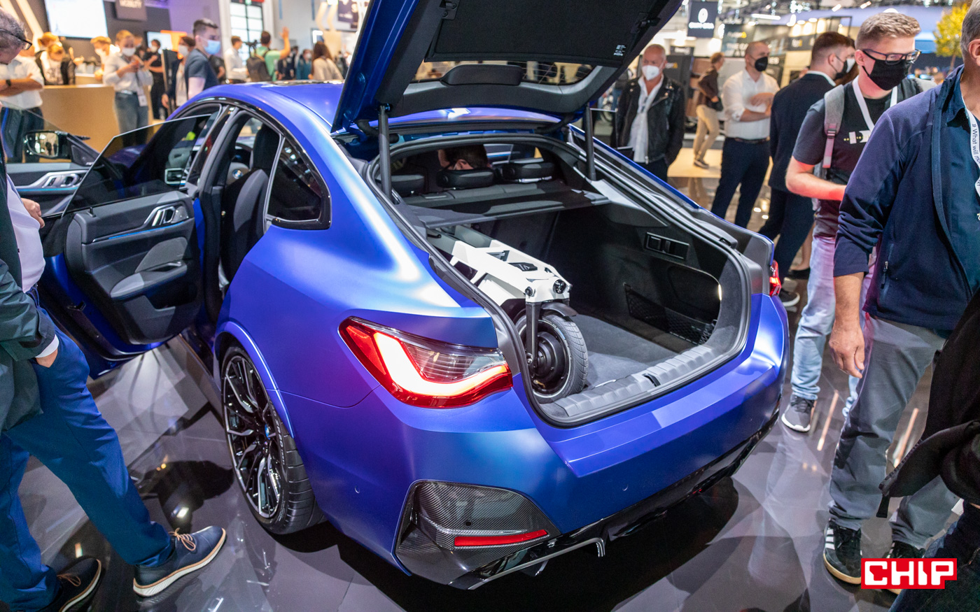 Zdjęcia BMW iX, THE 3 oraz THE 7 znajdziecie w linku w początkowej części tekstu. Poniżej za to chcę Wam pokazać modele, które pojawiły się na stoisku dzień później. Na początek BMW i4 M50, czyli… BMW i4 Competition? W porównaniu ze spalinowym M4 Competition wygląda niezmiennie obłędnie, tylko zastanawiam się, jaki będzie realny zasięg jeśli faktycznie skorzystamy z jego możliwości…