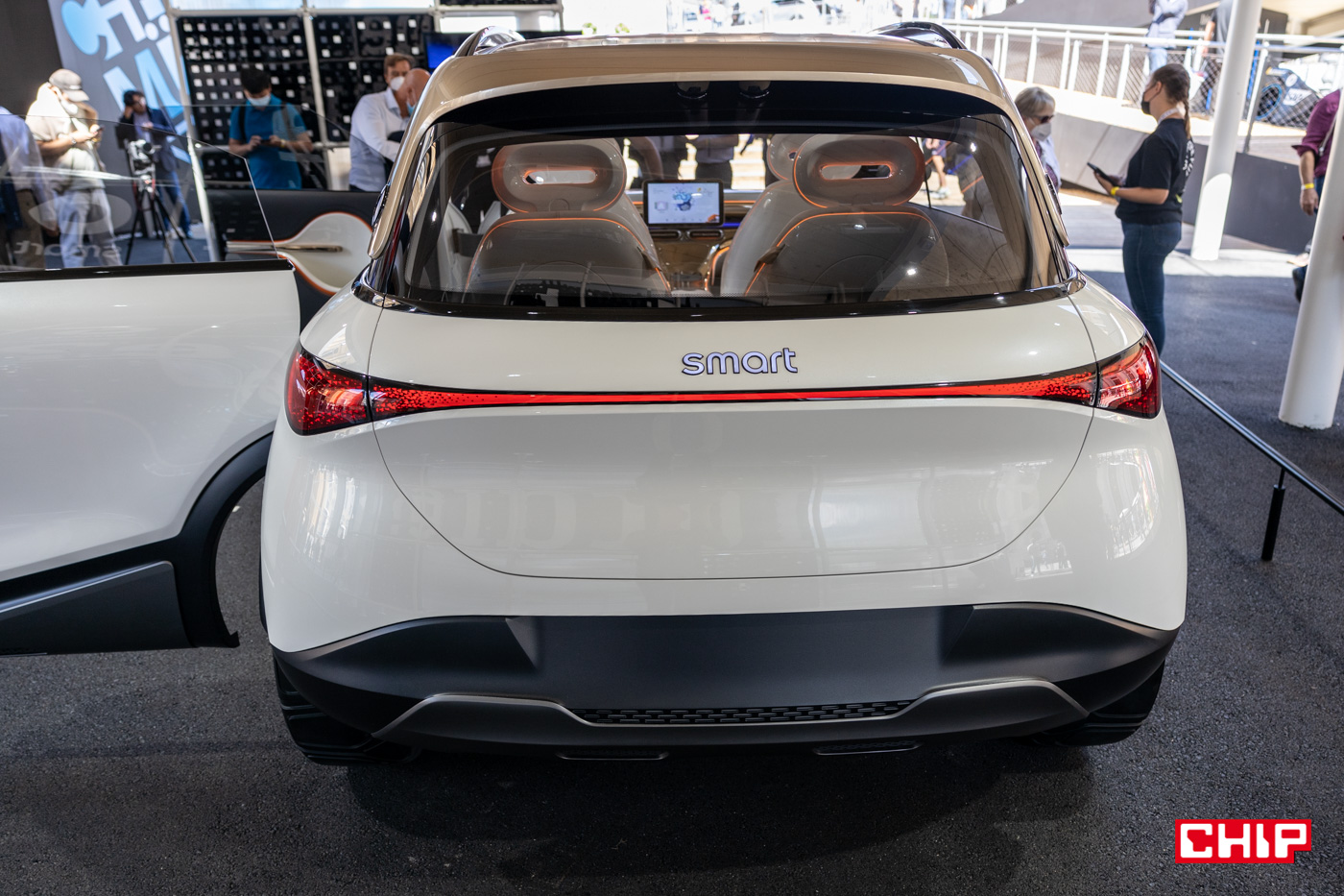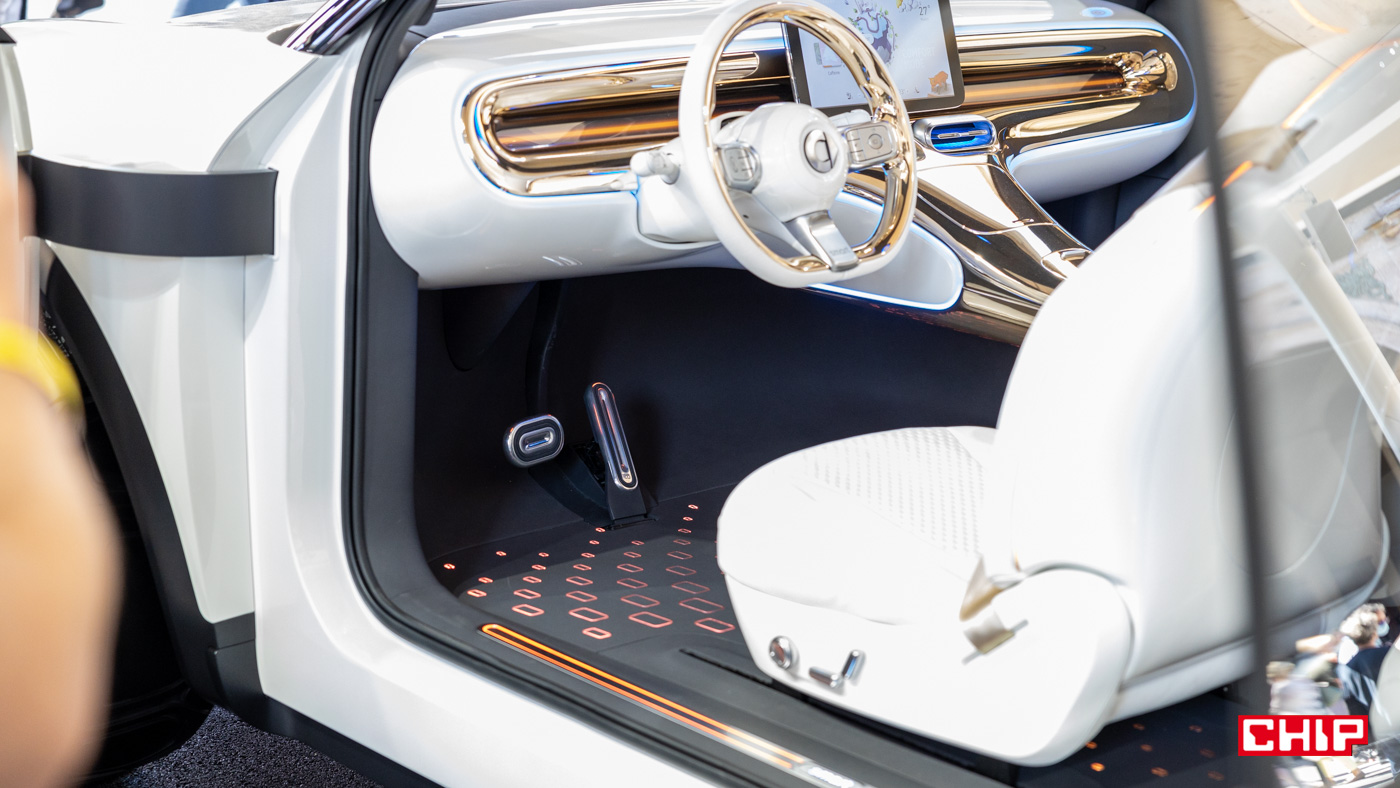 Koncepcyjny wariant Smarta #1 próbuje zerwać ze stereotypem malutkiego auta. Jest naprawdę dużym i ciekawie zaprojektowanym samochodem. Pomijając złote elementy wnętrza, z których mam nadzieję Mercedes zrezygnuje na etapie produkcji.