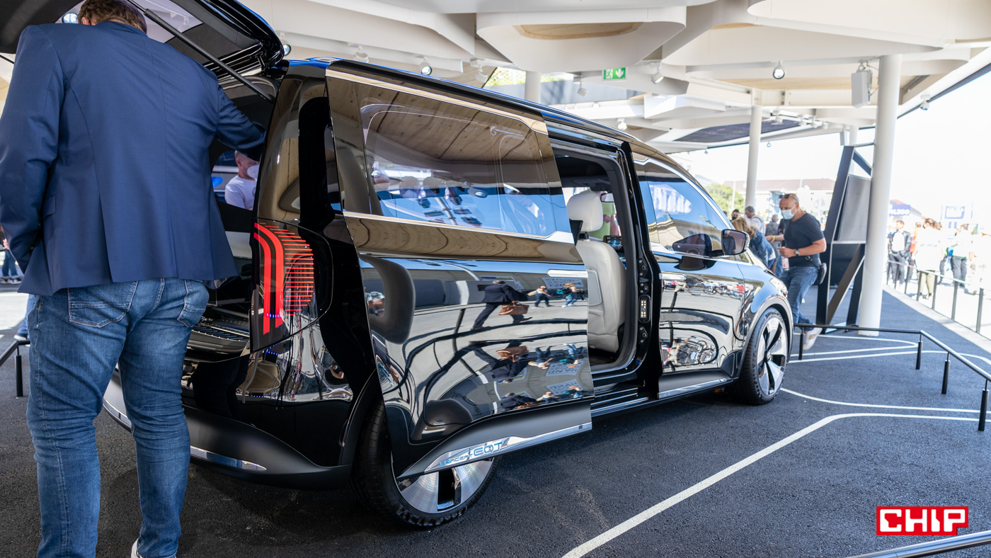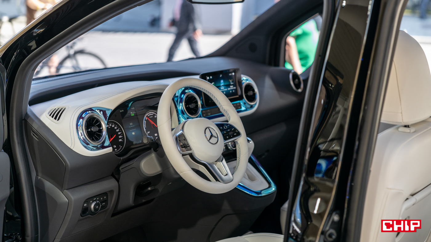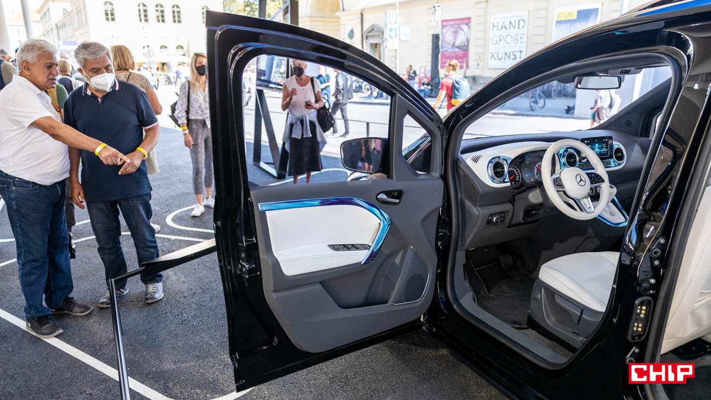 To auto, które na stoisku Mercedesa w centrum Monachium zrobiło na mnie największe wrażenie. Może dlatego, że widać, że nie będzie to model przesadnie drogi. Choćby ze względu na wykonanie, analogowe zegary, czy niewielki ekran. O wiele bardziej spodobał mi się EQT, niż EQV 300. Może poza błyszczącymi elementami wnętrza, które wyglądało, jakby ktoś nie zdjął z niego folii. Tak wyglądające auto może być bardzo popularne wśród taksówkarzy.