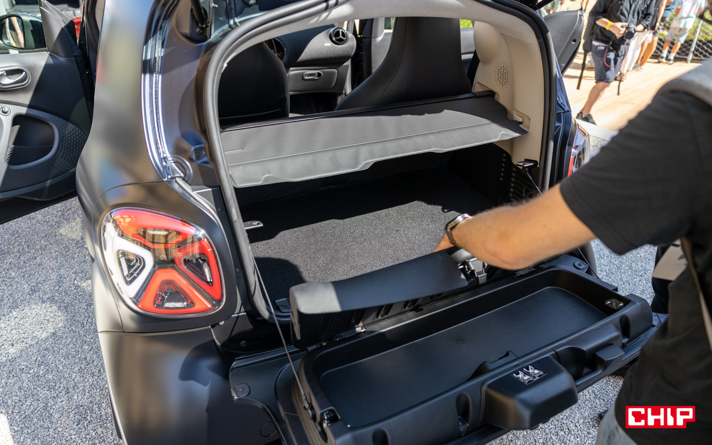 Ależ to jest ładne! Nowy smart wygląda niesamowicie agresywnie w tym wariancie lakieru. Ale też sam samochód robi pozytywne wrażenie. Jest zaskakująco przestronny i ma bagażnik, w którym zmieścimy całkiem spore zakupy.