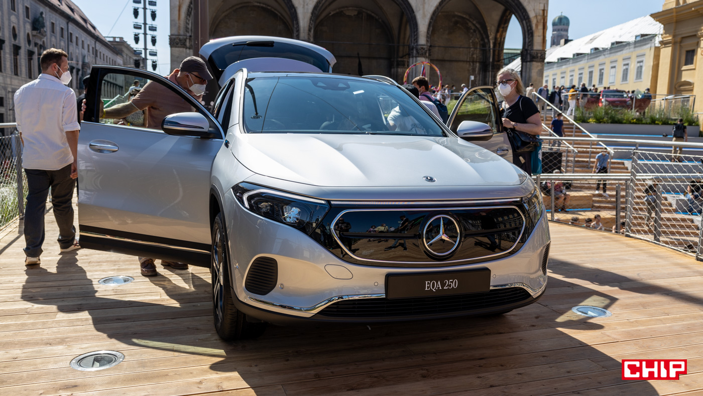 Dopchanie się do elektrycznej A-Klasy było trudne. Auto wzbudzało ogromne zainteresowanie.