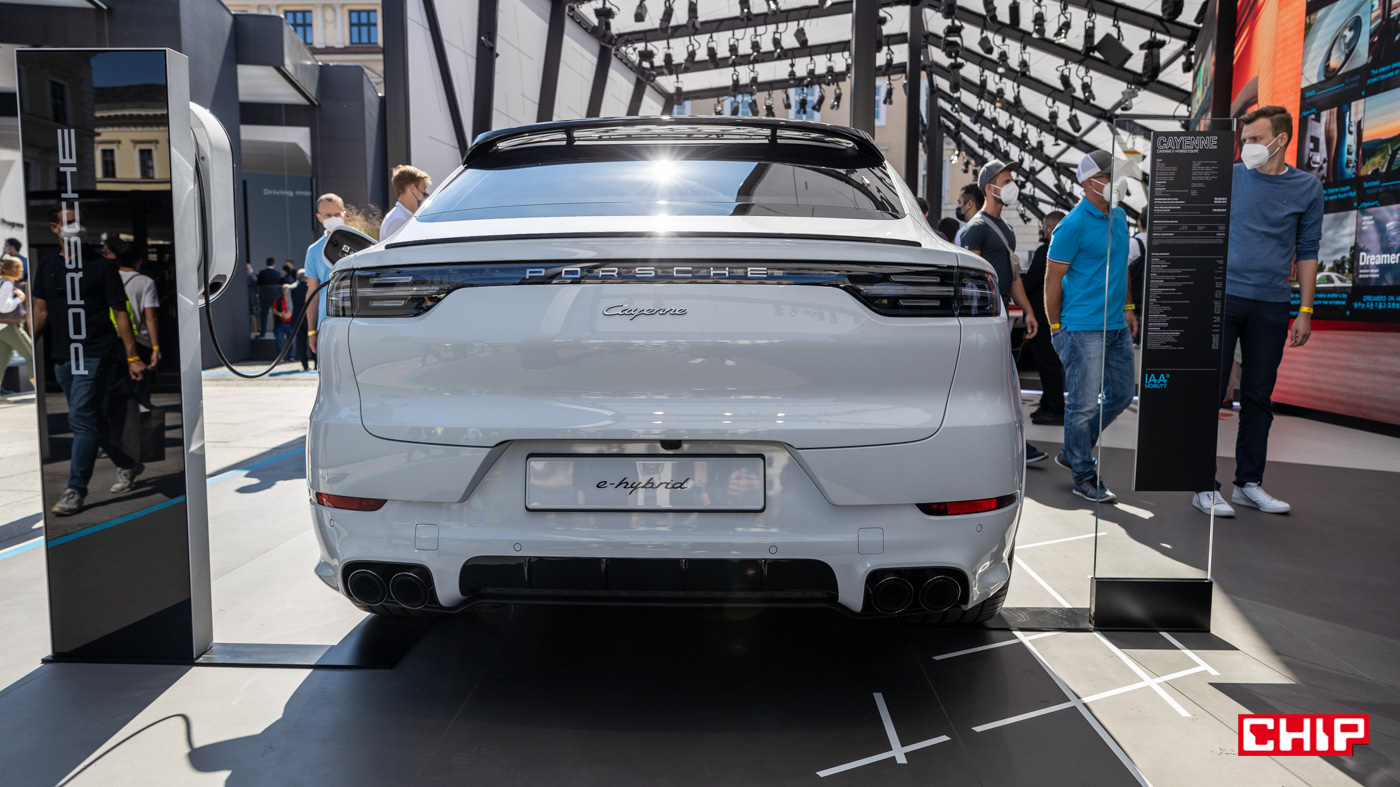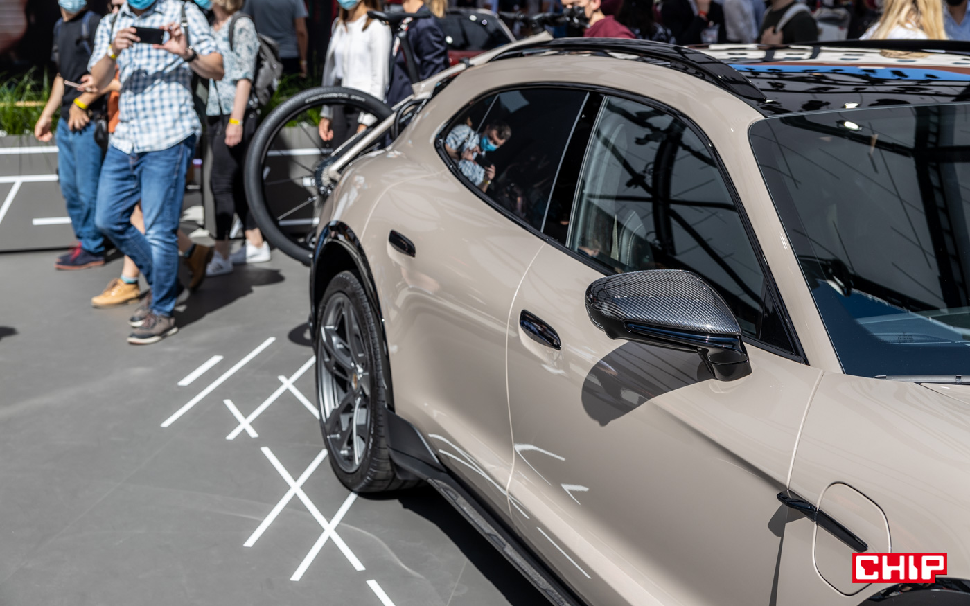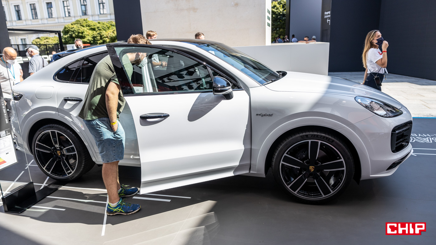 Szybko przenieśmy się na sąsiadujące z Audi stoisko Porsche. Tutaj, oprócz Mission R, czyli elektrycznej wyścigówki, mogliśmy zobaczyć hybrydę Taycana Turbo S, hybrydę Cayenne e-hybrid oraz… dwa modele do których przyznaję, nie udało mi się dopchać. Tłum był tutaj ogromny.