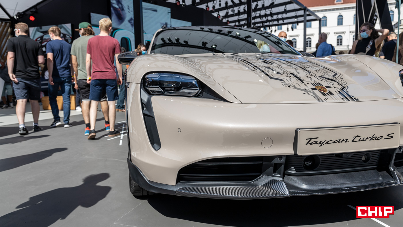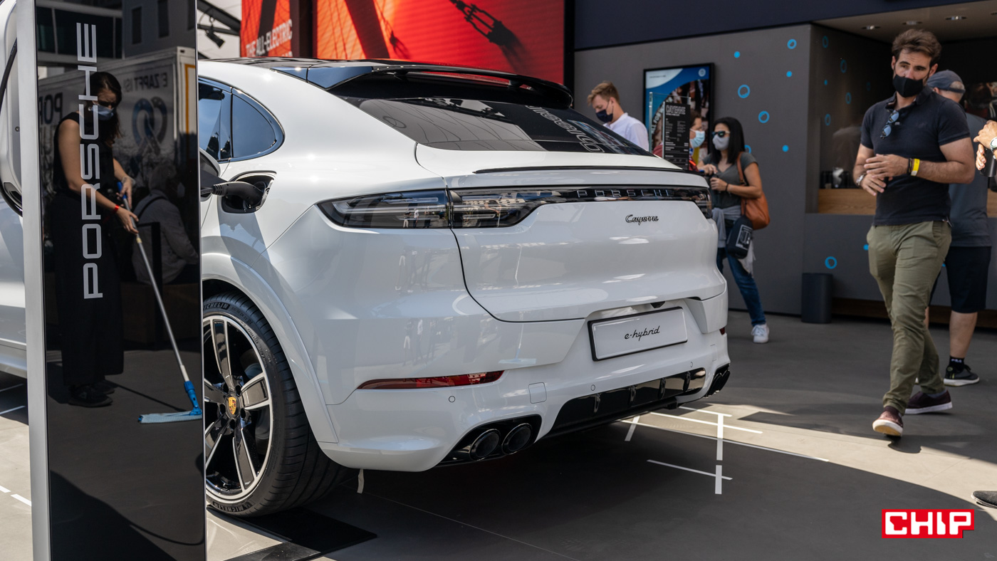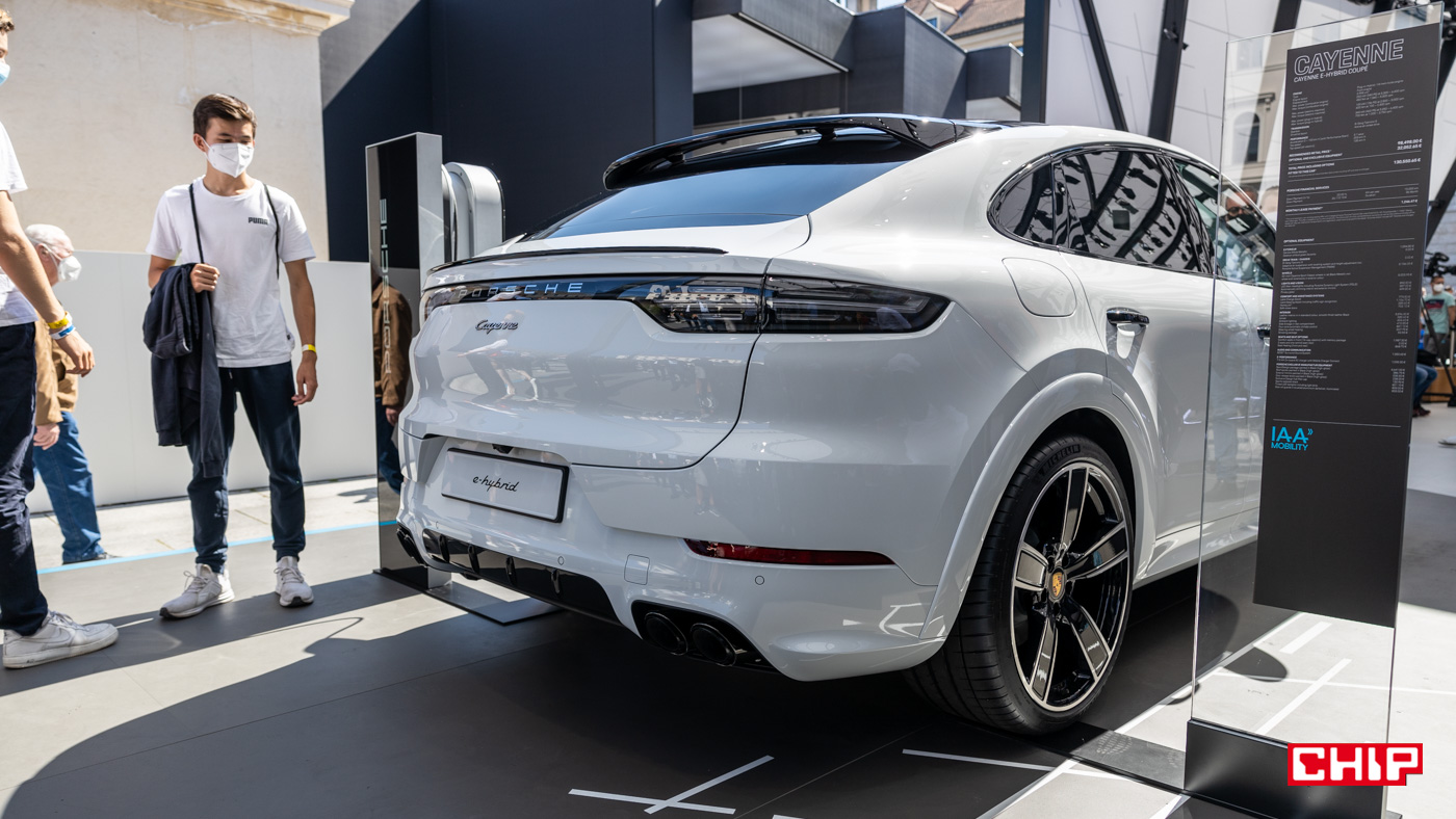 Szybko przenieśmy się na sąsiadujące z Audi stoisko Porsche. Tutaj, oprócz Mission R, czyli elektrycznej wyścigówki, mogliśmy zobaczyć hybrydę Taycana Turbo S, hybrydę Cayenne e-hybrid oraz… dwa modele do których przyznaję, nie udało mi się dopchać. Tłum był tutaj ogromny.
