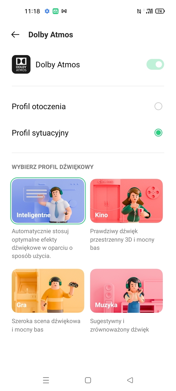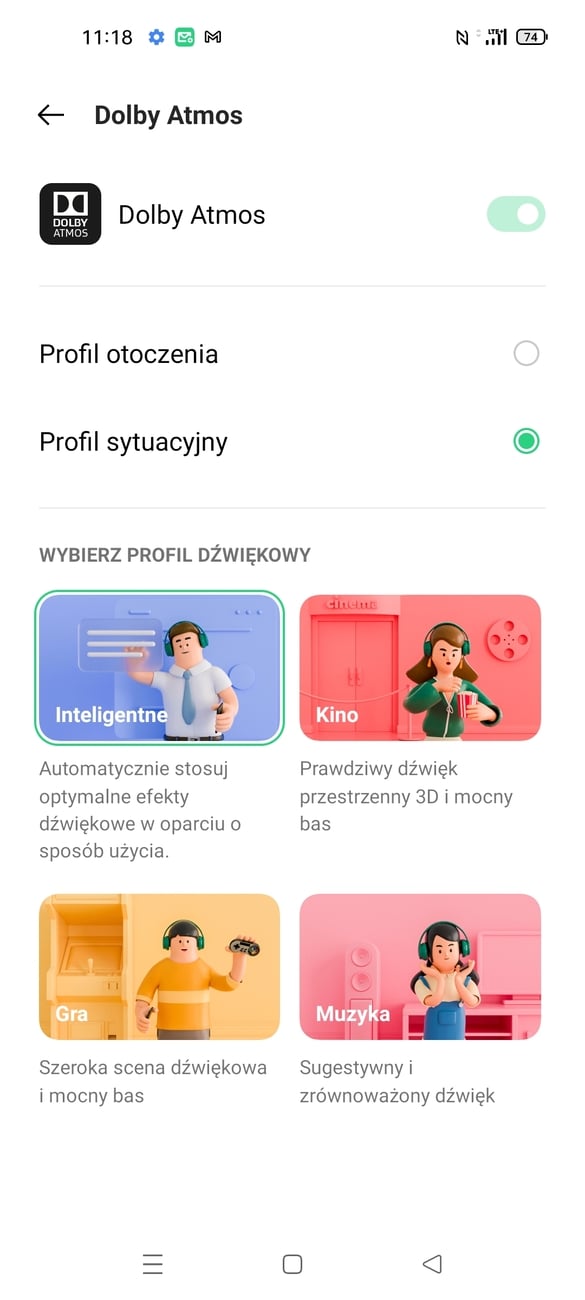 Smartfon nie ma gniazda miniJack, słuchawki trzeba więc podłączyć pod port USB C lub urzyć przejściówki, której jednak w pudełku nie znajdziemy. Dźwięk na złączu jest całkiem niezły, a dodatkowo możemy włączyć system Dolby Atmos. W mojej ocenie nie poprawia on jednak zbytnio jakości dźwięku.