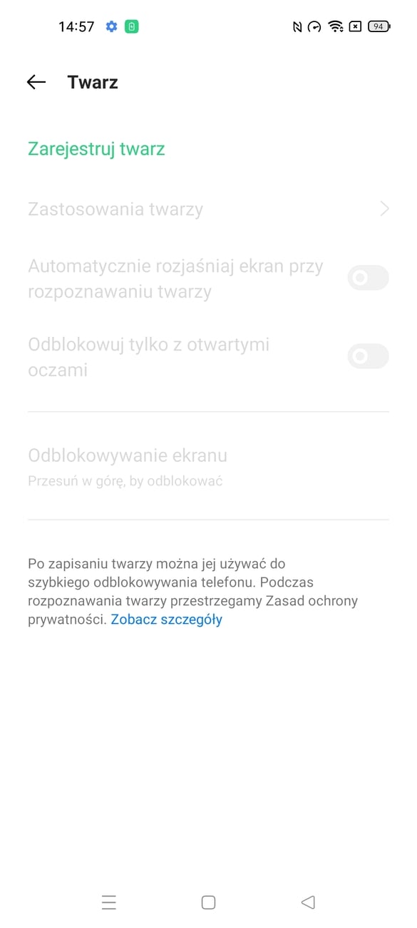 Jeśli chodzi o zabezpieczenia, to czytnik linii papilarnych został umieszczony pod ekranem, w mojej opinii trochę za nisko. Jest on bardzo szybki i celny, podobnie zresztą jak skaner twarzy. Co ważne działa on nawet wówczas, gdy mamy na twarzy maseczkę!