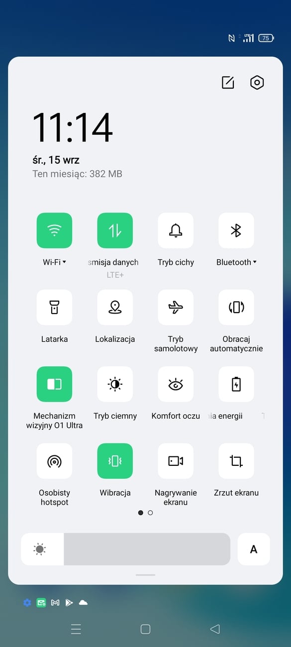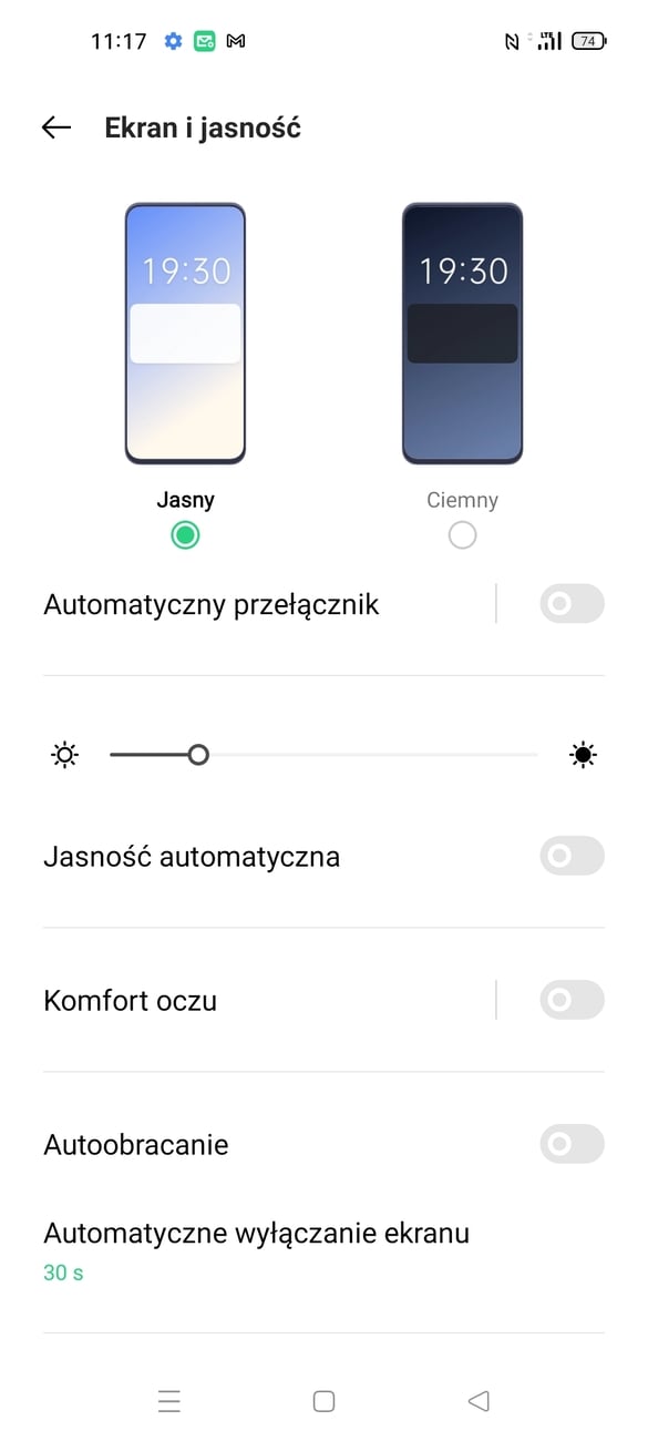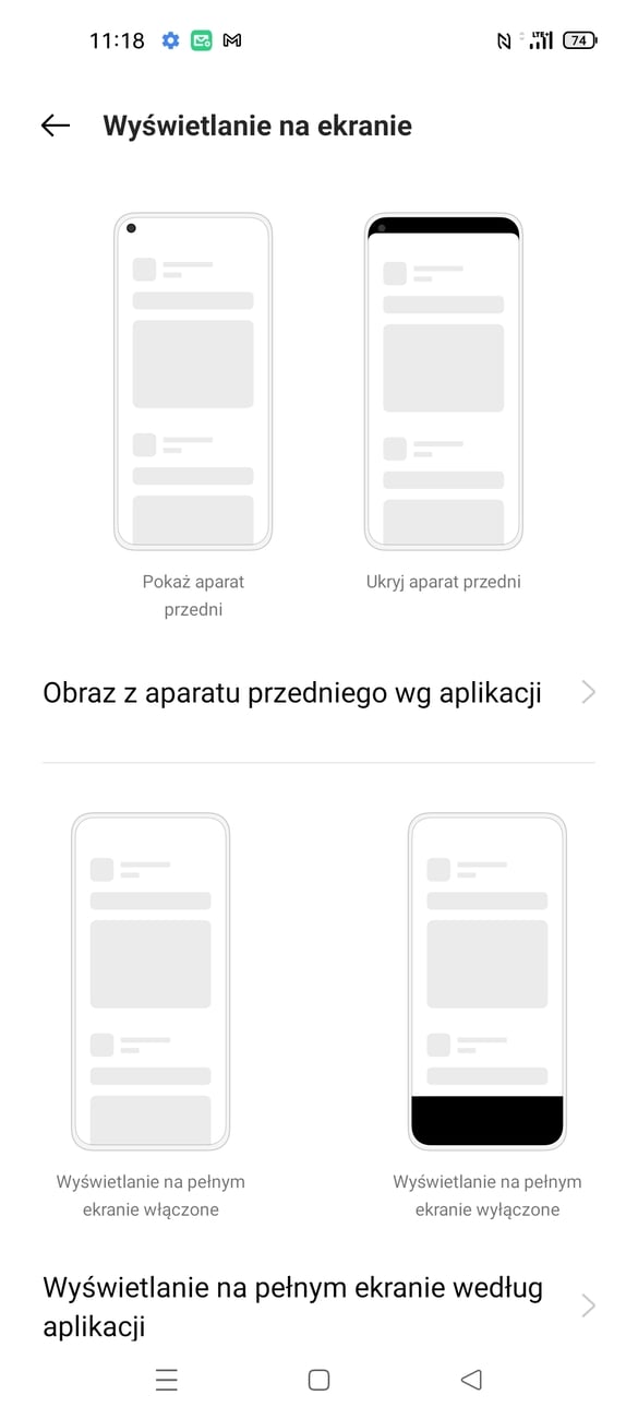 W ustawieniach znajdziemy filtr światła niebieskiego, możliwość regulacji nasycenia i temperatury barw oraz oczywiście tryb ciemny dla menu. Jest również możliwość zmiany częstotliwości odświeżania ekranu (z 60 do 90 Hz i odwrotnie) oraz ukrycia wcięcia na obiektyw kamery który znajduje się w lewym górnym rogu. Odbywa się to przez wyświetlenie u góry czarnego paska.