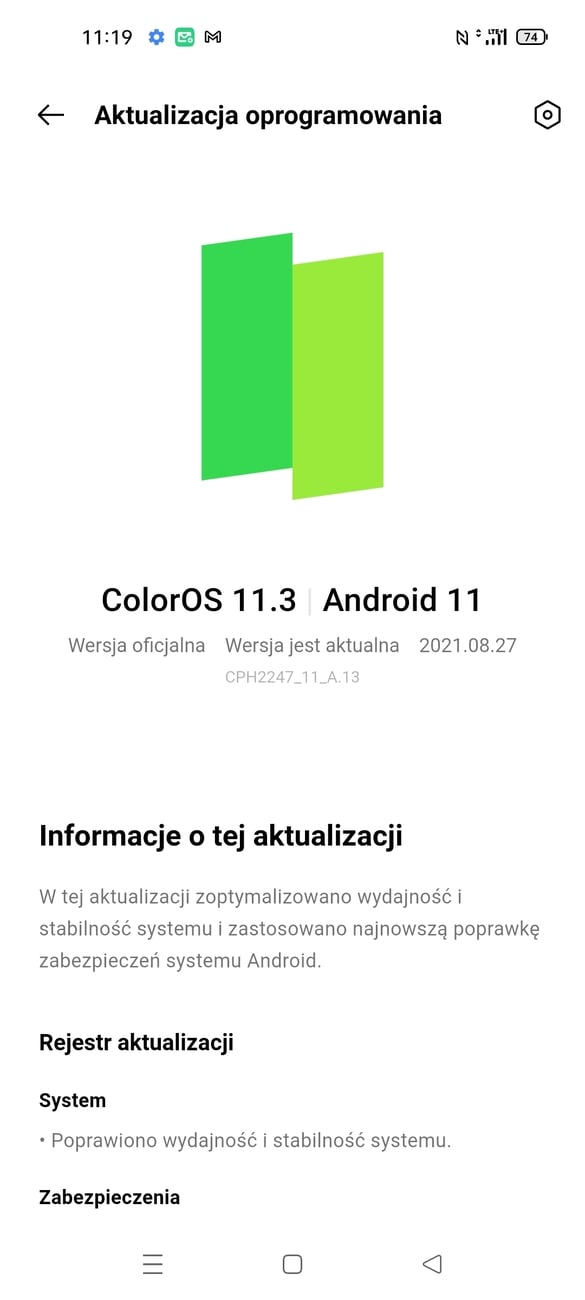 Telefon działa na najnowszym Androidzie 11 wraz z nakładką ColorOS 11.3. Jest więc czytelnie, kolorowo i funkcjonalnie, a co najważniejsze – płynnie i bezproblemowo.