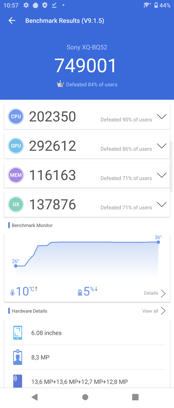 - Antutu Benchmark 9.1.5 – 749 001 pkt