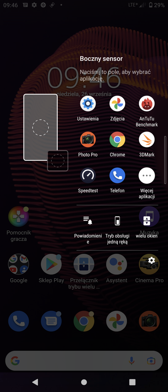 Xperia 5 III pracuje pod kontrola systemu Android 11, lekko, aczkolwiek charakterystycznie zmodyfikowanym przez producenta. Dodano m.in. autorskie aplikacje do odtwarzania muzyki, robienia zdjęć i nagrywania filmów. Ekran główny jest podzielony na pulpity i szufladę ze skrótami do wszystkich aplikacji. Ponadto znajdziemy tu tzw. Boczny sensor, czyli panel pokazujący się po dwukrotnym stuknięciu w krawędź ekranu, w którym znajdziemy skróty do wybranych przez Nas aplikacji. Bardzo praktyczne rozwiązanie. Jest również Always On Display i kilka aplikacji firm zewnętrznych.