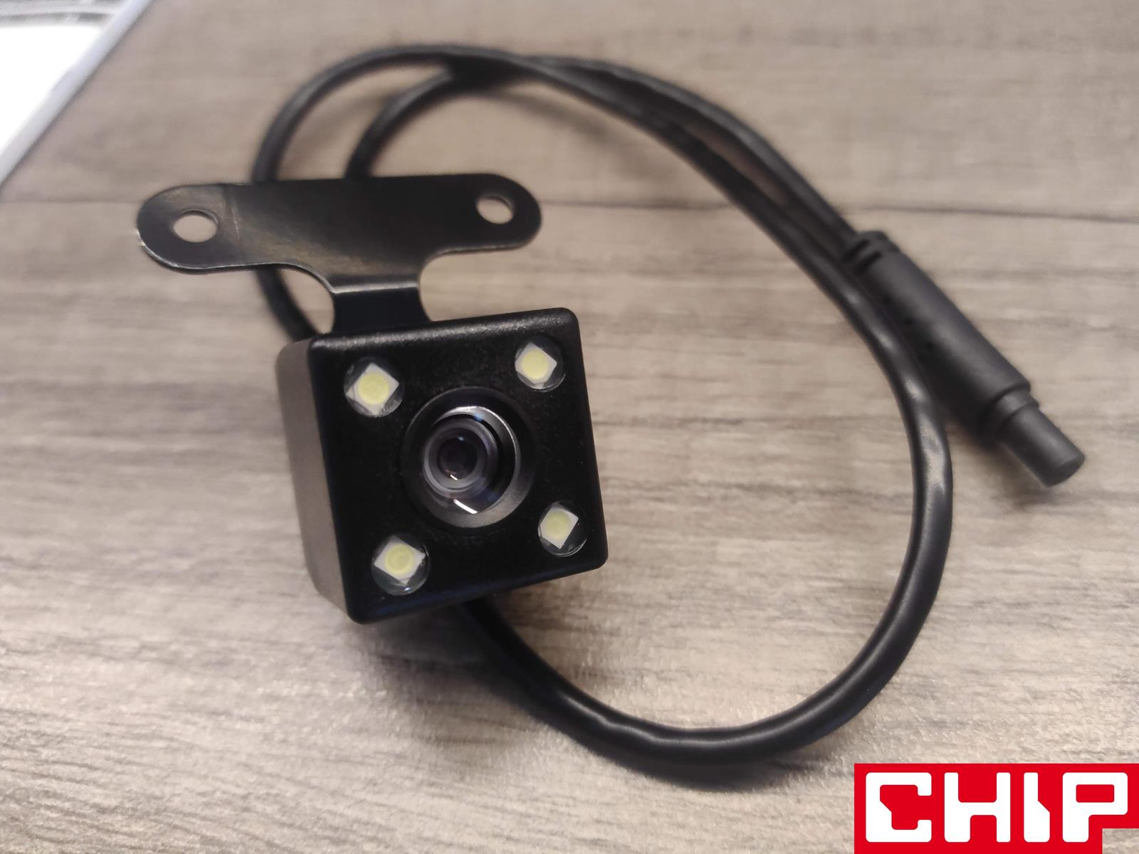 Z kolei tylna kamerka, to prosta plastikowa kostka z metalowym uchwytem montażowym, której obiektyw otaczają cztery diody na podczerwień.