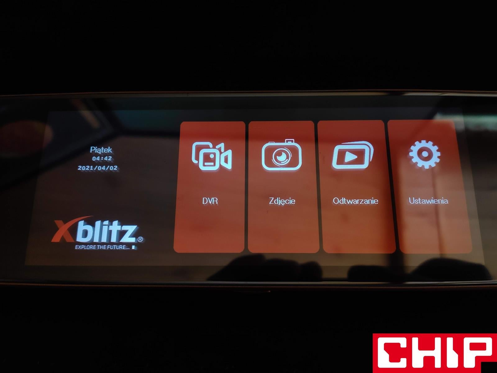 Drugim elementem, zapewniającym Park View 2 minimalizm, jest sam 7-calowy ekran dotykowy, który jakością i szczegółowością wprawdzie nie powala, ale jego kąty widzenia i jasność nie utrudnia codziennego korzystania z niego. Dzięki temu rozwiązaniu Xblitz mógł zapomnieć o przyciskach sterujących, oddając wszystko interfejsowi, gdzie znajdziemy m.in. ikonę kłódki do zabezpieczania nagrań, mikrofonu do wyciszania/aktywowania go, czy ikonę trybu parkingowego, dzięki czemu nie musimy przeklikiwać kilka zakładek, żeby aktywować go po zaparkowaniu.