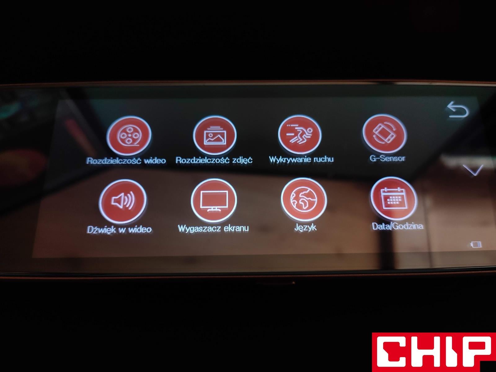 Samo menu nie należy do najbardziej responsywnych, dlatego nie liczcie na specjalnie wysoką płynność przy dostosowywaniu opcji, ale zapewnia to, co najważniejsze, czyli tryb nagrywania, robienia zdjęć i możliwość przeglądania nagranych materiałów (te zablokowane manualnie lub z pomocą czujnika wstrząsów w plikach lądują do osobnych folderów).