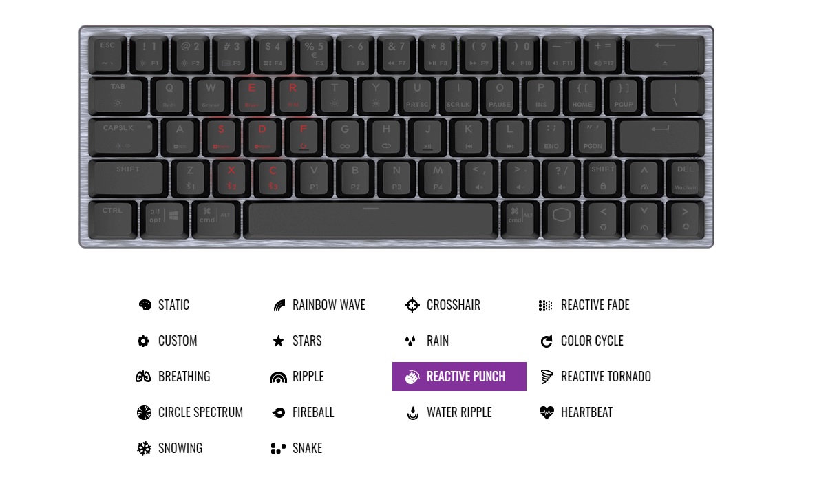 Na wygląd SK622 trudno jednak narzekać, o co dodatkowo dba z nawiązką sam system podświetlenia z wieloma dostępnymi trybami. Tutaj ponownie trzeba pochwalić producenta, bo zadbał nie tylko o podświetlenie głównego znaku klawisza, ale też pobocznej funkcji, co i tak jest, w przypadku tego typu klawiatury, kluczowe, bo praktycznie każdy klawisz skrywa dodatkową funkcję, do której dostęp umożliwia kombinacja z klawiszem funkcyjnym. Niektóre nawet posiadają aż trzy funkcje, zależnie od trybu.