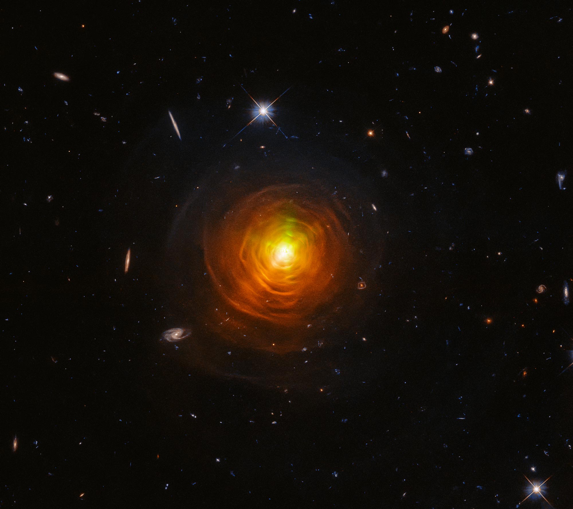 Obiekt ten jest oddalony o około 400 lat świetlnych od Ziemi, a Kosmiczny Teleskop Hubble’a wykonał niedawno jego efektowne zdjęcia. Widać na nich gwiazdę, której pomarańczowo-czerwona barwa zdradza informacje na temat temperatur panujących na jej powierzchni. Te są zaskakująco niskie i wynoszą mniej niż 1300 stopni Celsjusza.