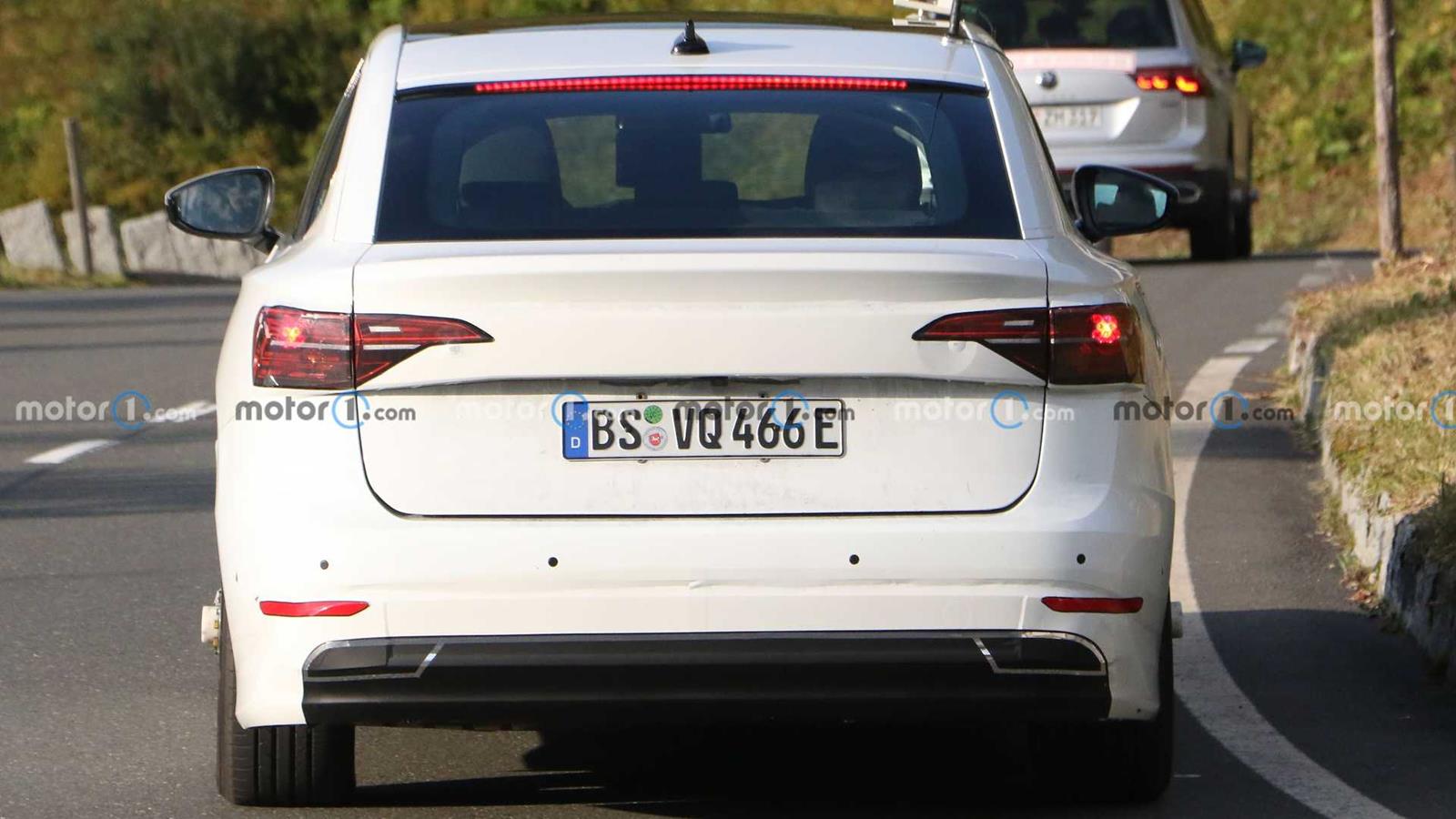 Tę wersję przedprodukcyjną Aero B Volkswagena już w rzeczywistości widzieliśmy przed miesiącem. Potwierdza to zarówno tablica rejestracyjna, jak i sam kamuflaż, obejmujący fałszywą maskownicę chłodnicy zwieńczone ukrytymi pod czarną taśmą fragmentami reflektorów. Te najpewniej są połączone ze sobą paskiem LED na modłę rozwiązania z ID.4.