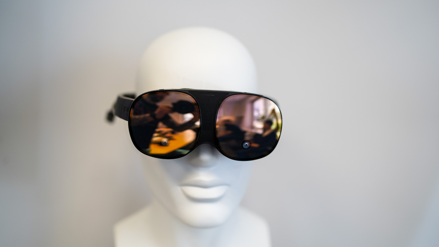 Okulary kryją dwa ekrany o rozdzielczości 3,2K każdy, ze 100-stopniowym polem widzenia i 75 Hz odświeżaniem obrazu. Na każdym ekranie mamy okular, który można regulować bardzo płynnie obracanymi pierścieniami, dopasowując go do wady wzroku. Mamy wadę +1,5 dioptri, tak ustawiamy obraz i to faktycznie działa. Przy czym zastosowane okulary nie mają żadnych certyfikatów medycznych, czy czegoś podobnego. To autorskie rozwiązanie HTC.